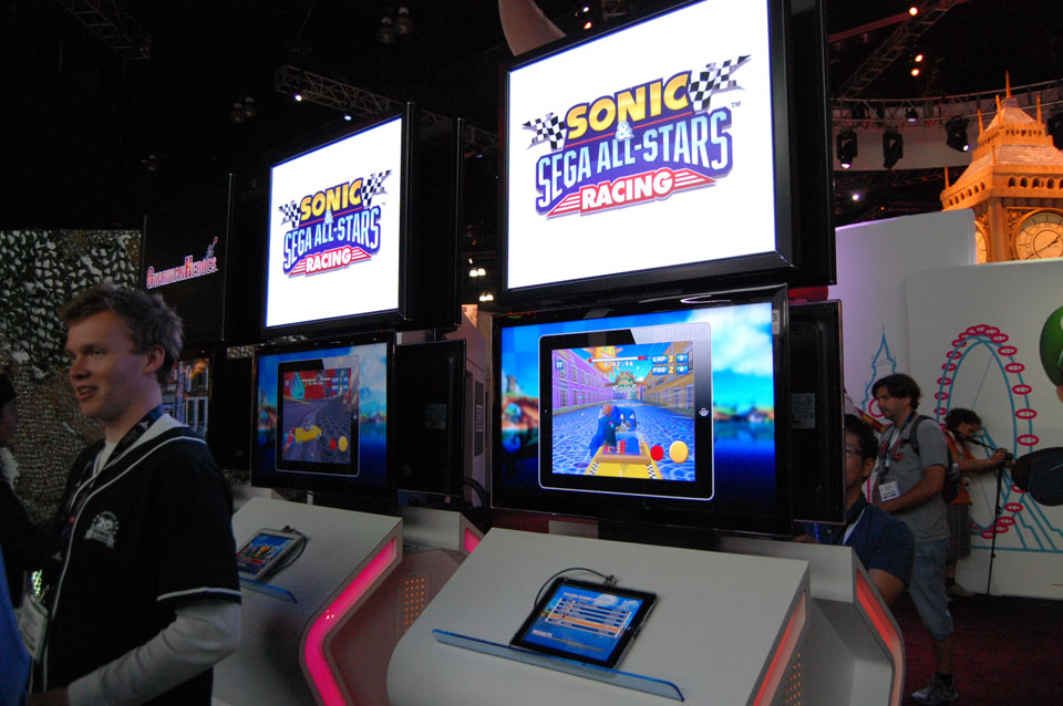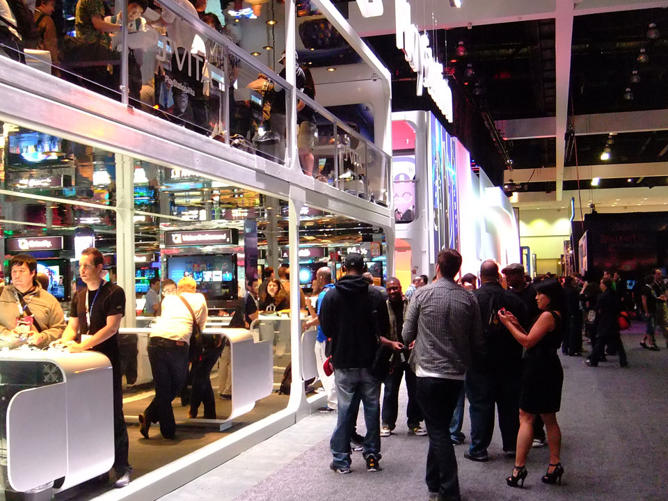 Ich schlüpfte durch die Kontrolle zu den Meeting Rooms. Bei SCEE war eine Lounga aufgebaut, wo man auch die PS Vita ausgiebig testen konnte. Kein Anstehen, wie unten auf dem Floor. So checkte ich Virtua Tennis und Everybodie’s Gold. Beide sahen nach PS3 aus – die PS Vita schien mir arg groß für ein Haupt-Spielegerät. Mit Touchscreen ist das aber alles OK, angenehm leicht – mal sehen, wer’s braucht.