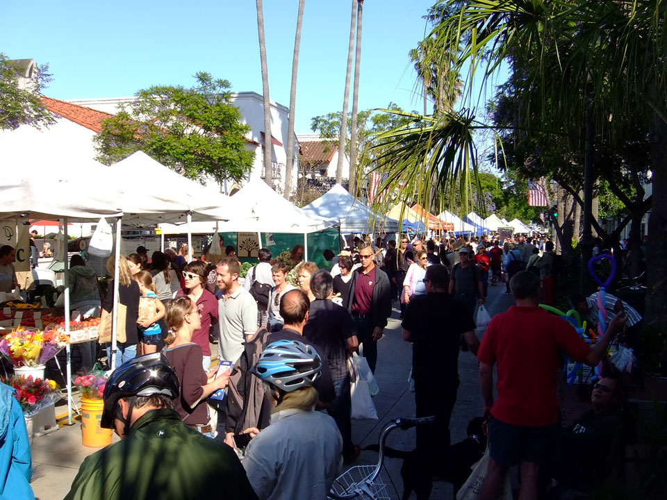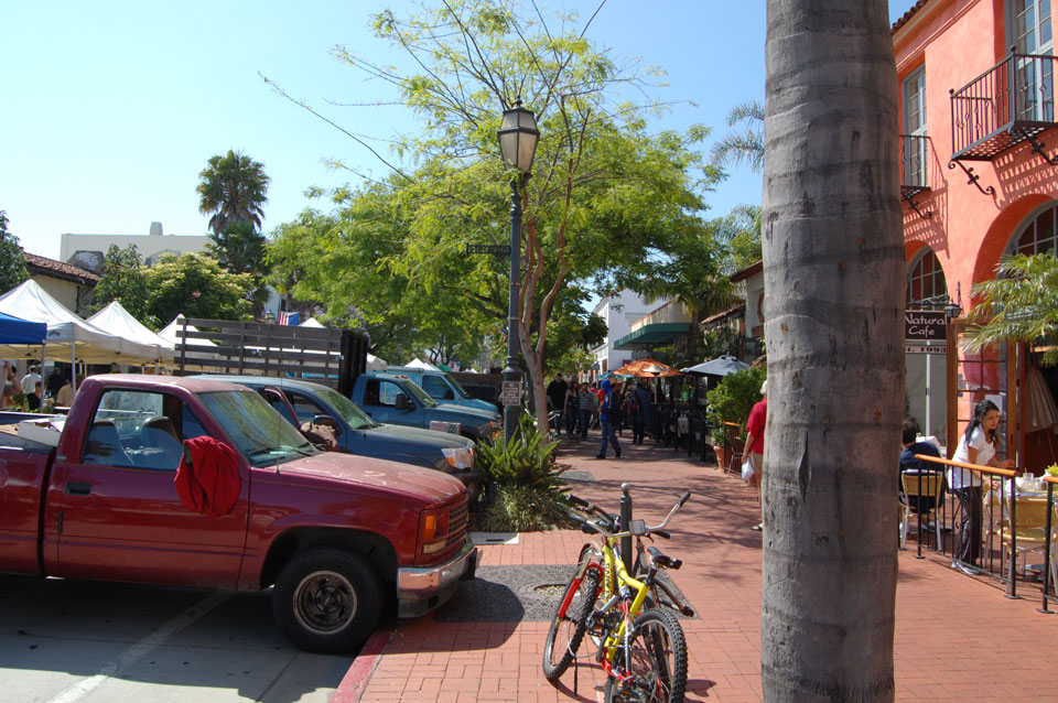 Runter zu auf der State Street ging es so viel einfacher bergab. Am Farmer’s Market stieg ich ab. Heute wurden organische Früchte und Gemüse verkauft. Ein paar Musiker nebenan, alles OK. Die Stadt ist eben klein und nett und auch recht reich – eher was für Senioren.