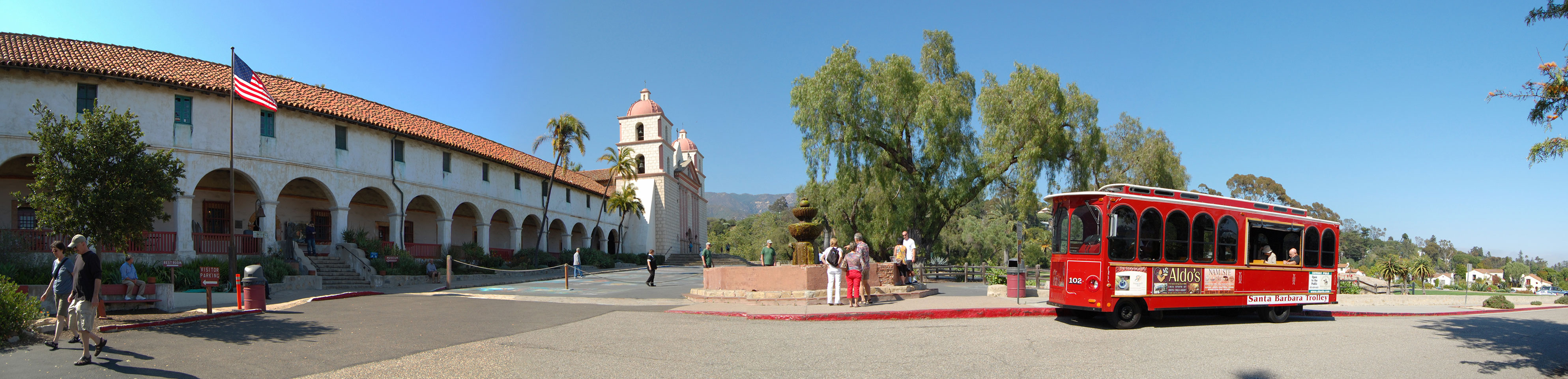 Ich mietete mir ein Fahrrad ($15) für den ganzen restlichen Tag und machte los. Zuerst was richtiges zu Essen im „Natural Café“. Ein Albacore Sandwih und Espresso Shake. Das brachte genügend Kalorien für den Weg zu Santa Barbara Mission.