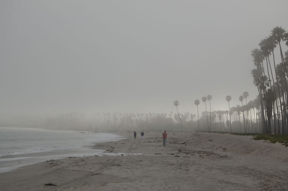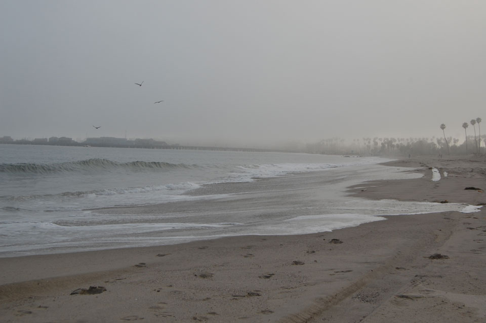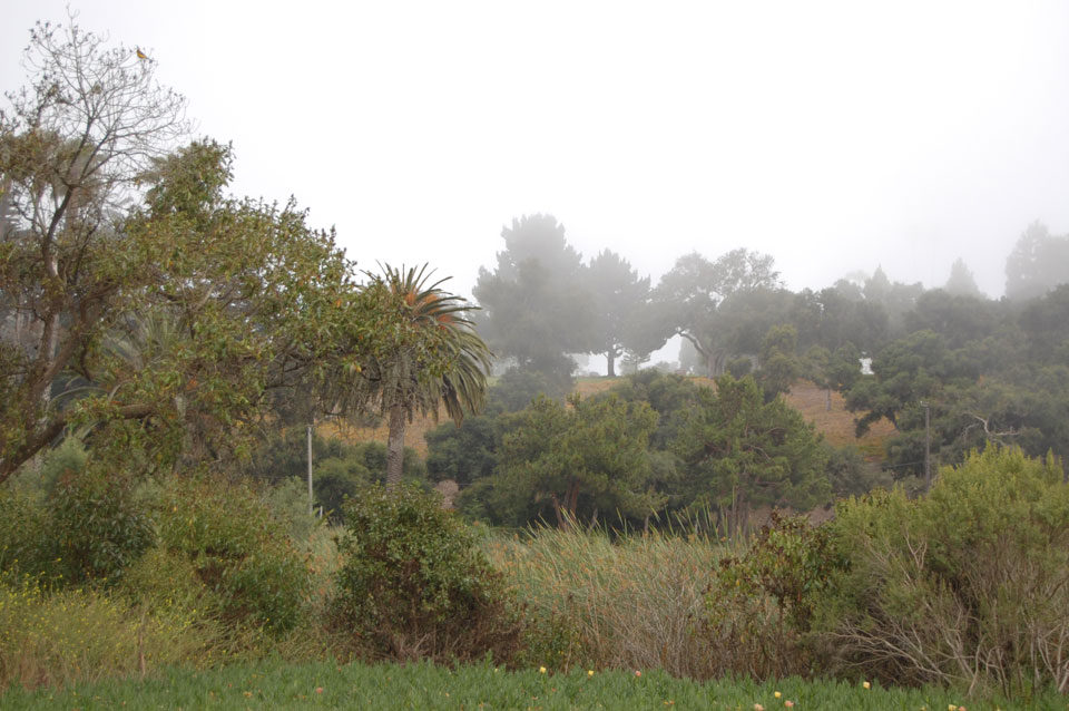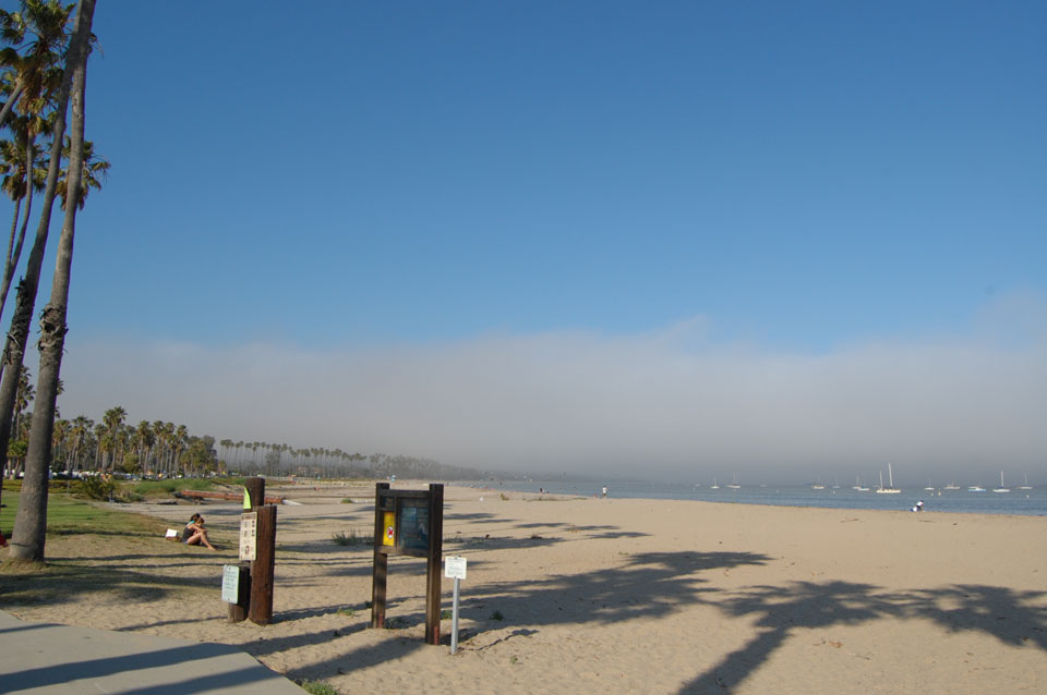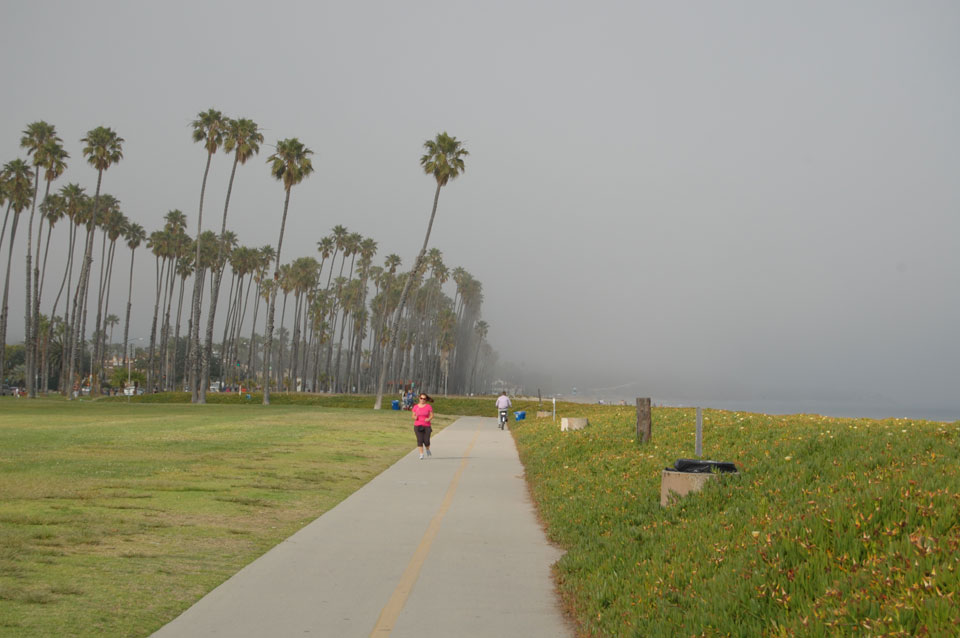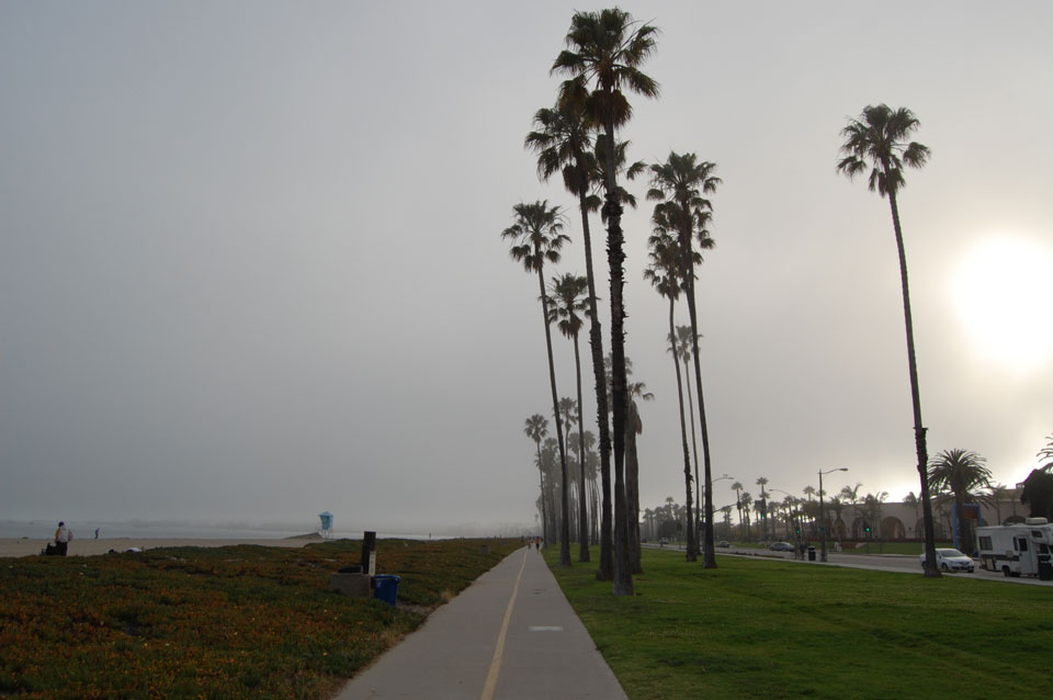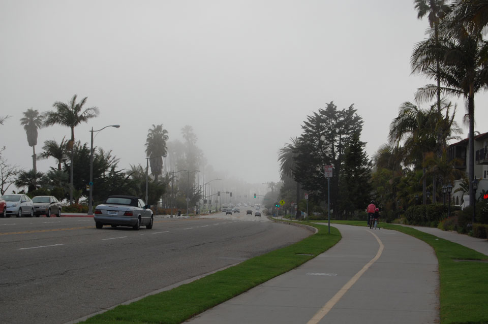 Runter zum Stearns Wharf sah ich eine Nebelwand aufziehen. Man konnte richtig sehen, wie sie sich auf den Ort zuschob, feuchte Luft. Ich fuhr nach links / Osten und war schnell im Nebel eingehüllt. Zum Glück hatte ich heute mein Kapuzenshirt mit, es wurde frisch.