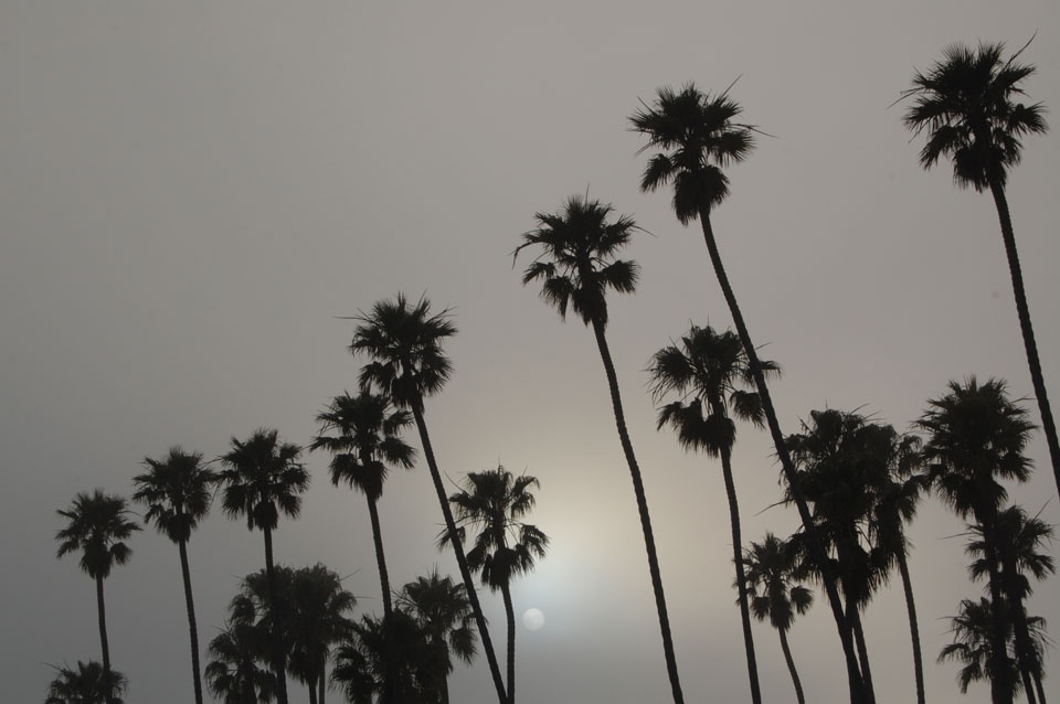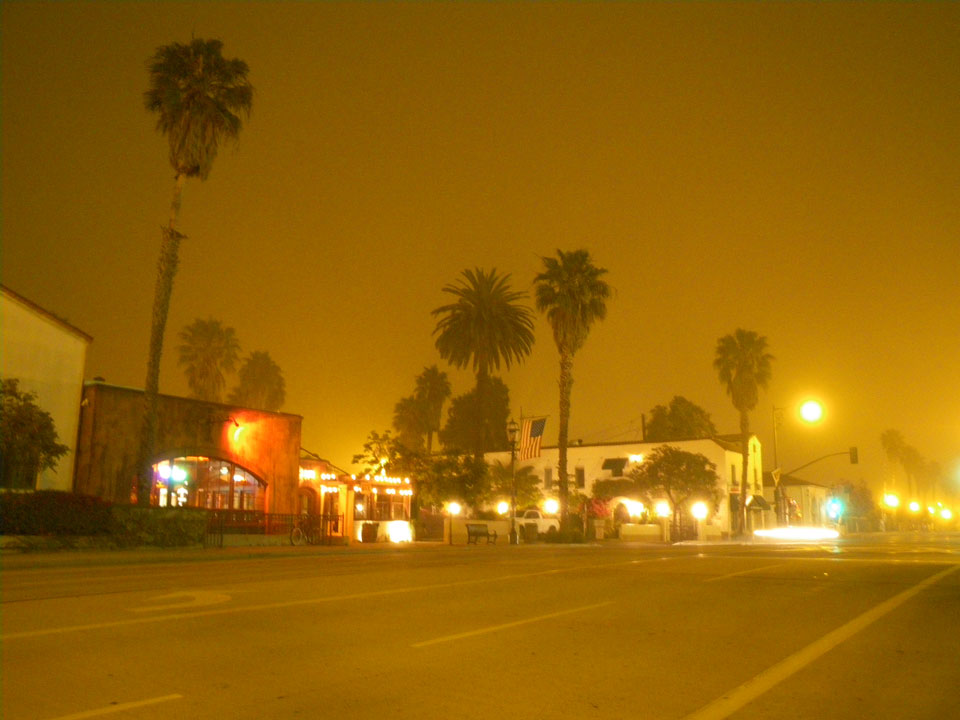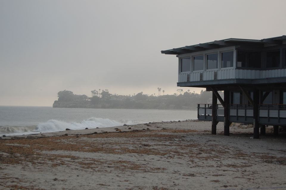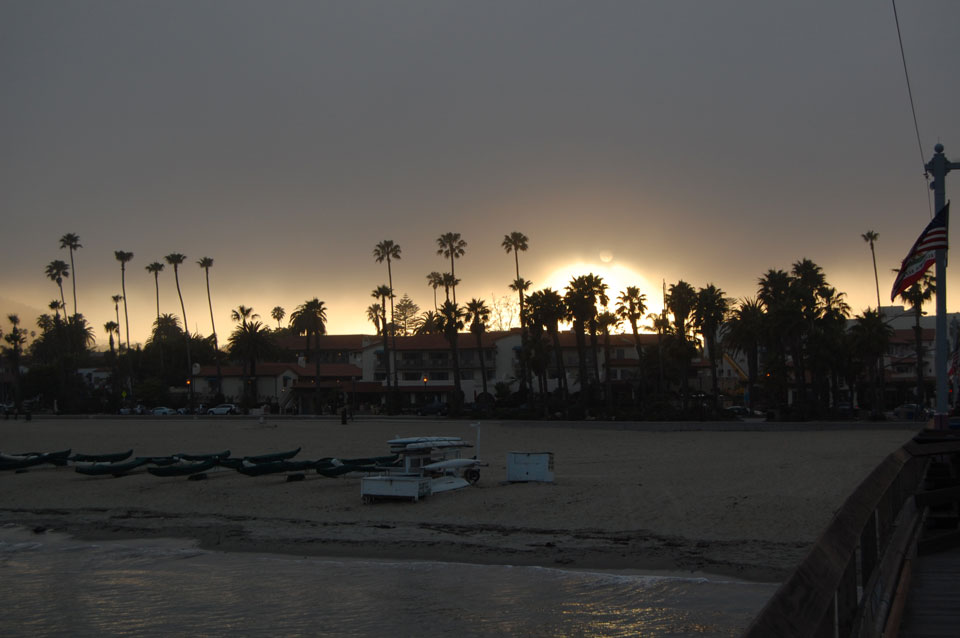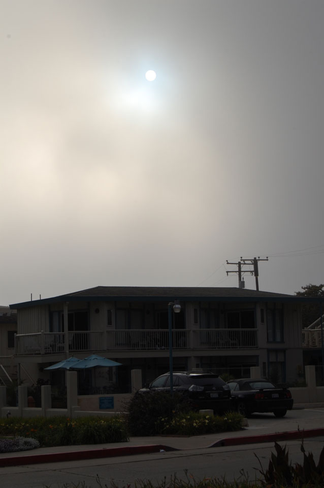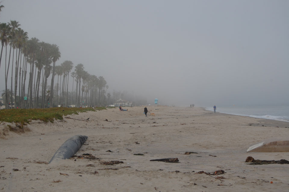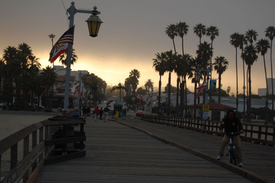 Runter zum Stearns Wharf sah ich eine Nebelwand aufziehen. Man konnte richtig sehen, wie sie sich auf den Ort zuschob, feuchte Luft. Ich fuhr nach links / Osten und war schnell im Nebel eingehüllt. Zum Glück hatte ich heute mein Kapuzenshirt mit, es wurde frisch.