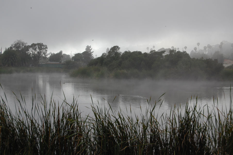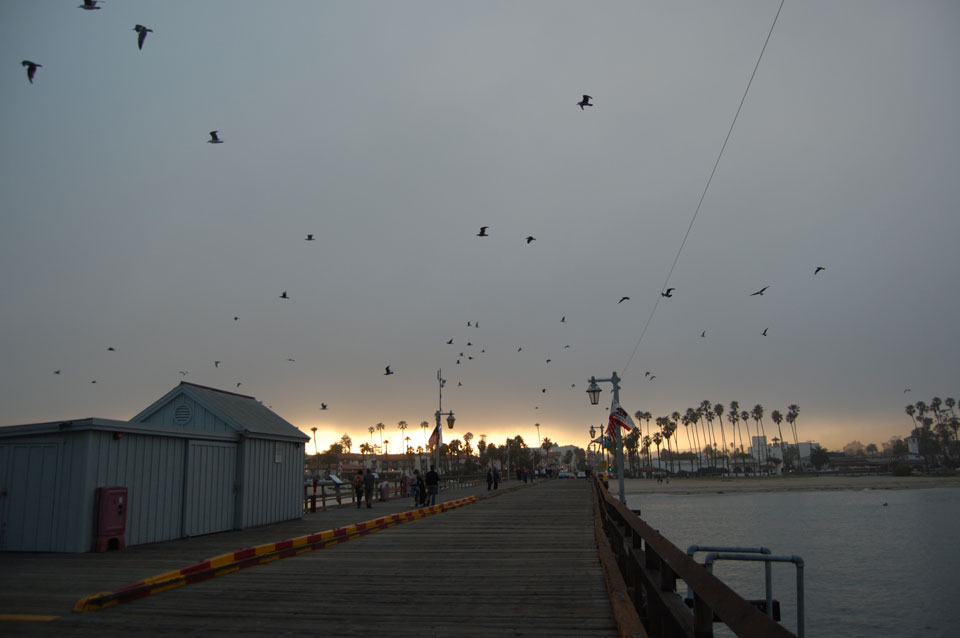 An einem See sah die natur einfach wunderschön aus. Der Nebel auf dem Wasser, Enten oder Gänse und alles etwas schummrig am Tag. Die Stimmung war so ganz anders als noch vor ein paar Stunden, auch nett. Ich drehte eine Runde, fuhr bis zum Hafen und am Ende noch auf den Stearns Wharf. Pelikane stürzten sich auf Fische, ein paar Robben schwammen auch herum.
