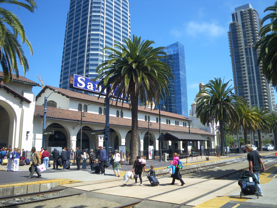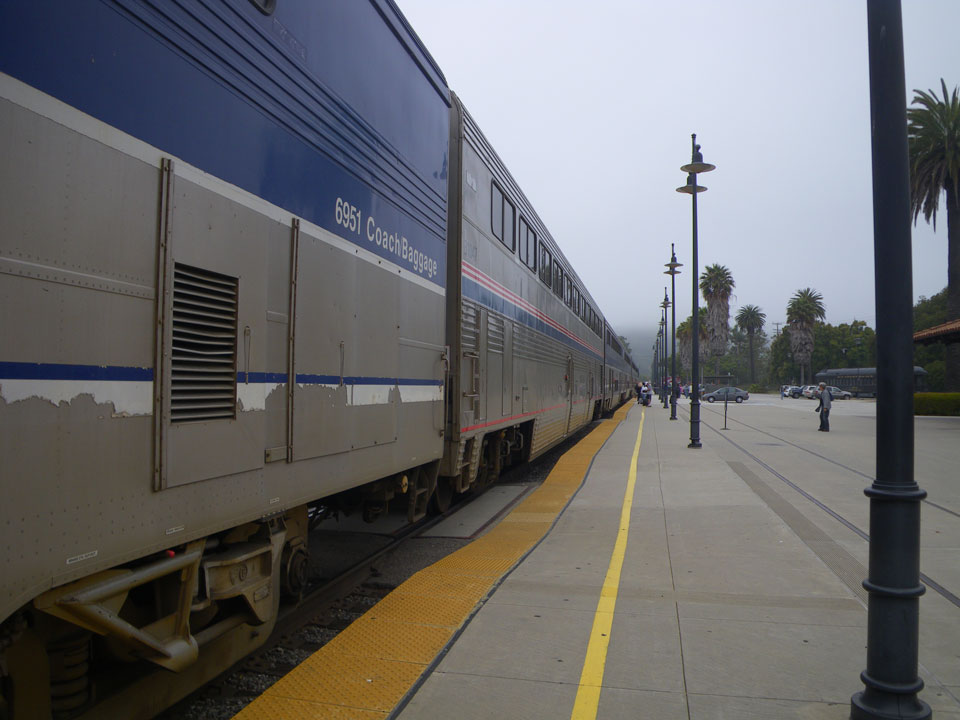 Beinahe hätte ich’s verschlafen, wachte aber 10 vor 9 auf, checkte aus und sah aus dem Hostel den Zug vorfahren. Ein schöner Platz und ab ging’s 9:30 im Surfliner gen Süden.