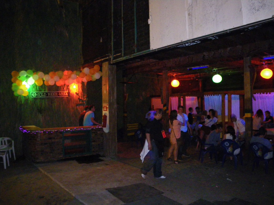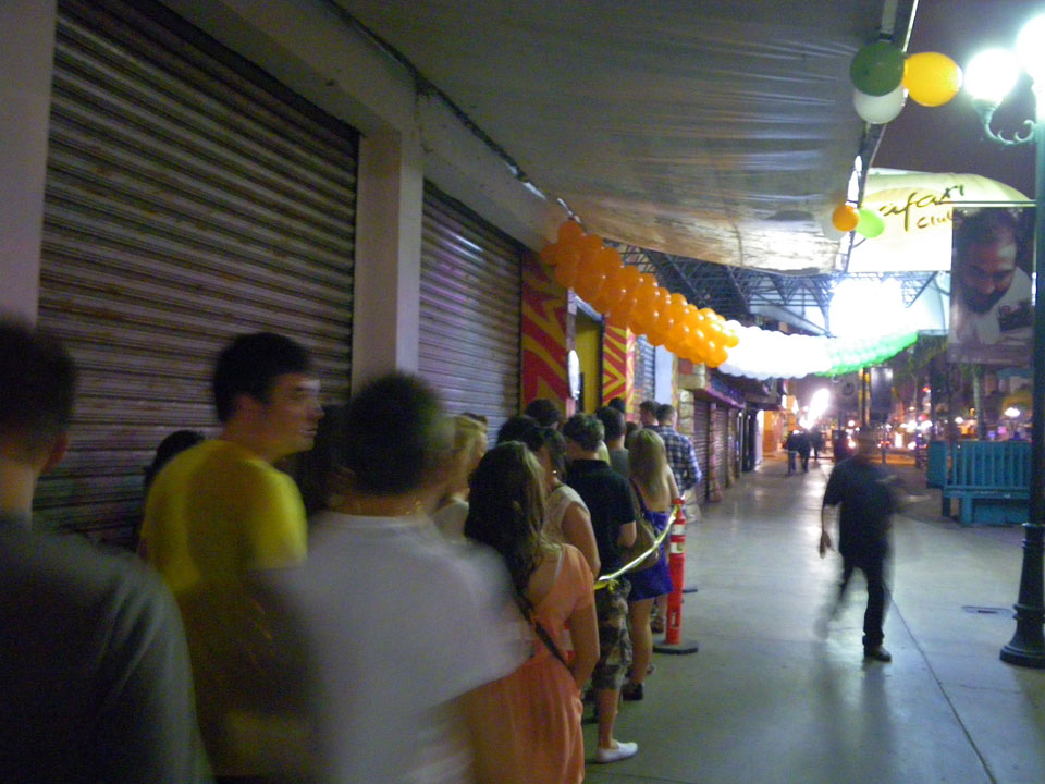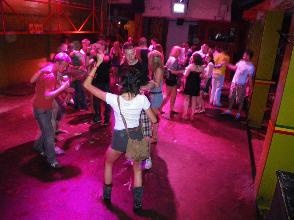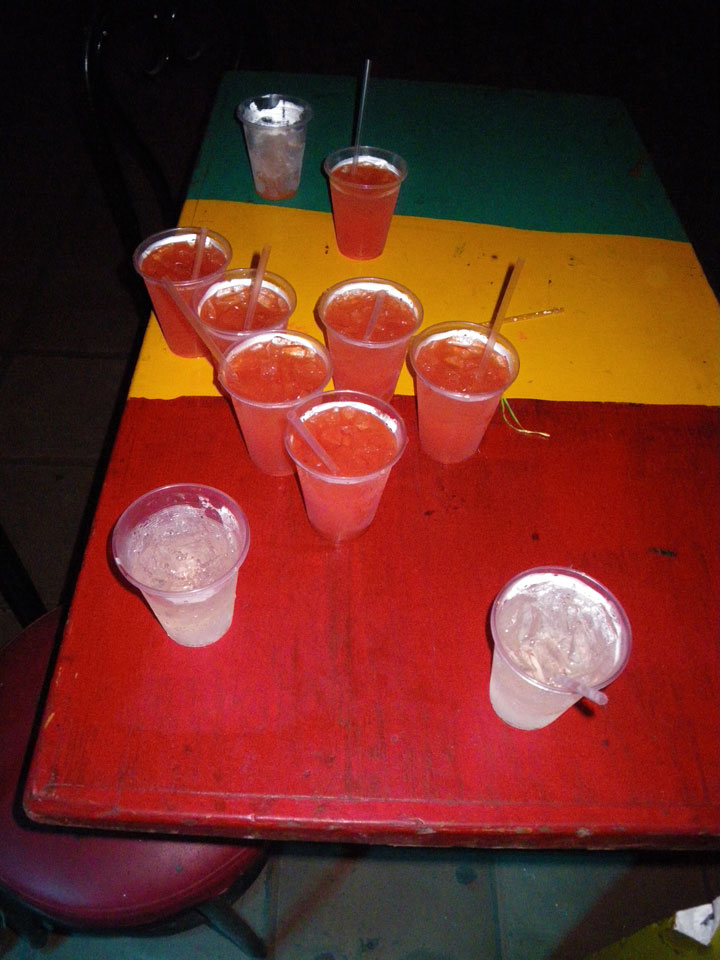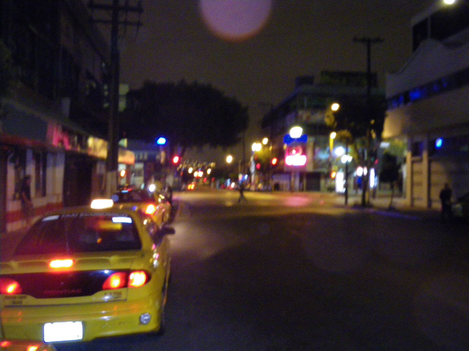 Es ging zur Grenze, dann weiter im Taxi zu einem Club, der ausschließlich für unsere Meute reserviert war. Die ersten Drinks (Rum&Coke) waren schrecklich. Wohl der schlechteste Rum&Coke ever. Ein paar andere Sachen schmeckten besser. Die Servierer trillerten und wollten auch Tips haben.