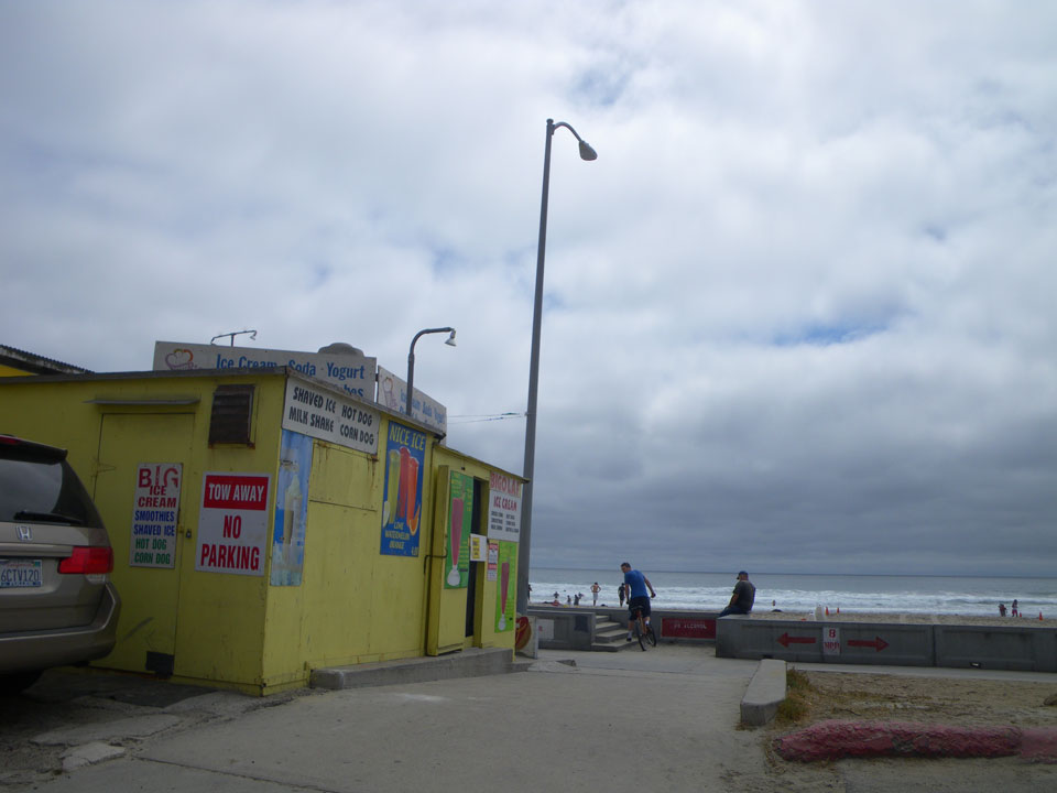 Später ging ich den Mission Blvd hoch, machte ein paar Photos. Zum Baden war das Wetter heute wieder nicht sonnig genug. Ein Haarschnitt auf Länge Nummer 1 wurde es in einem mexikanischen Shop – $10 und erneut $5 Tip. Das Geld saß heute locker. Bei Coldstone gab’s gutes Eis – hier aber nur $1 Tip. Weiter Einkaufen bei CVS – $10 für Diverses.
