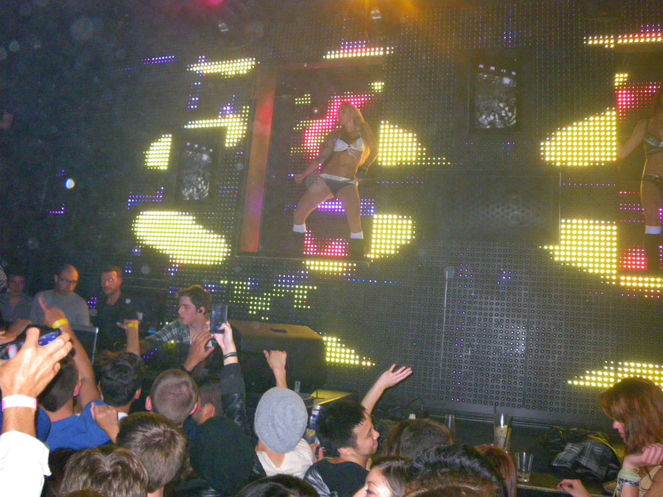 Viele Leute und kaum genug Platz zum Tanzen. Selten so eingeengt gewesen. Ein Rum&Coke, der reinhaute und um 1:30 war der Spaß vorbei. Cooler Club mit ordentlicher LED und Sound-Anlage, die mich an Essential in Riga erinnerte – hier mit Gogos in der Wand.