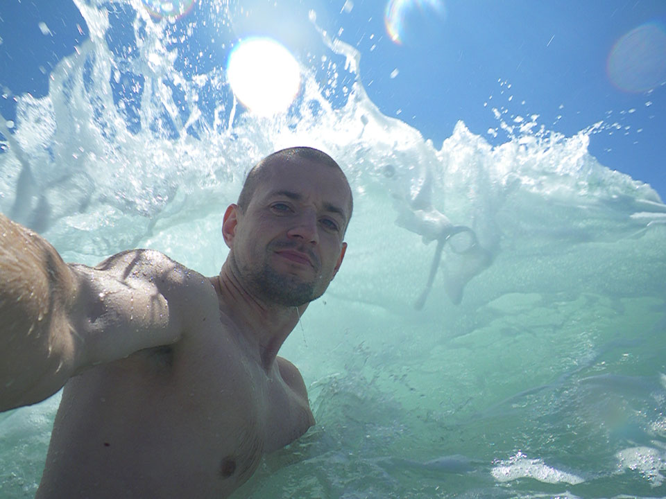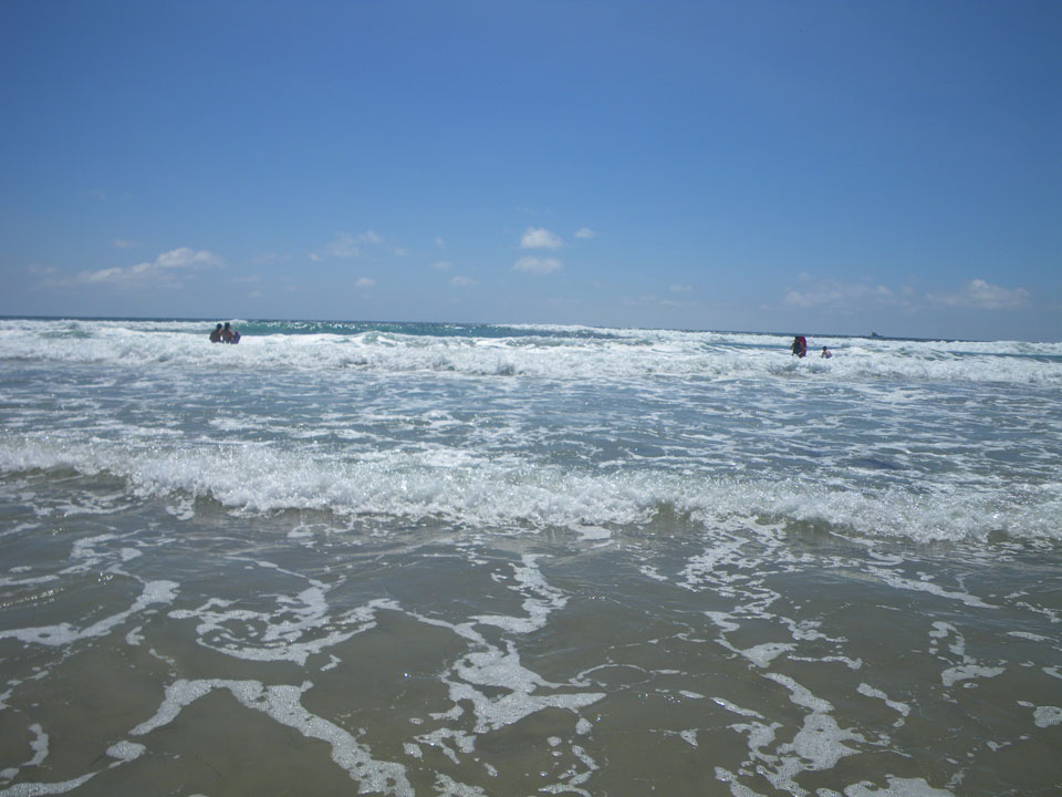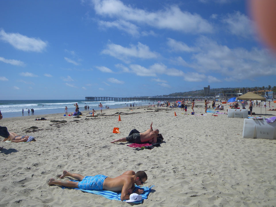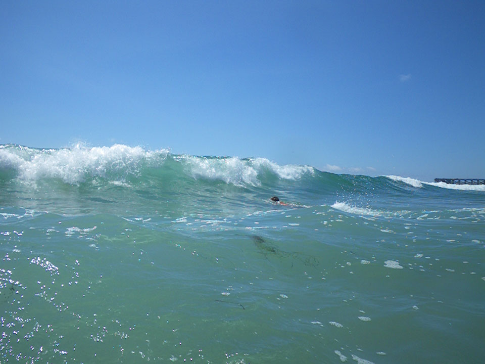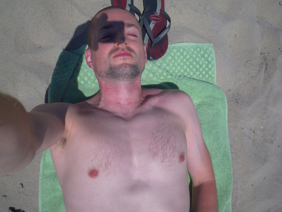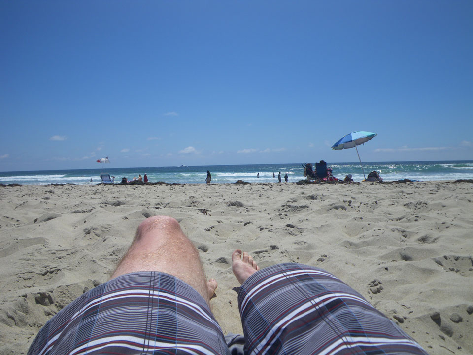 Bei so schönem Wetter ging ich nochmal an den Strand und sogar baden. Das Wasser war frisch. Ohne Sonnencreme konnte ich auch nicht zu lange bleiben. War aber super – endlich mal wieder im Pazifik.