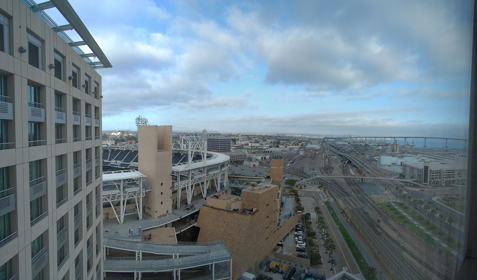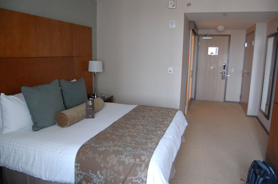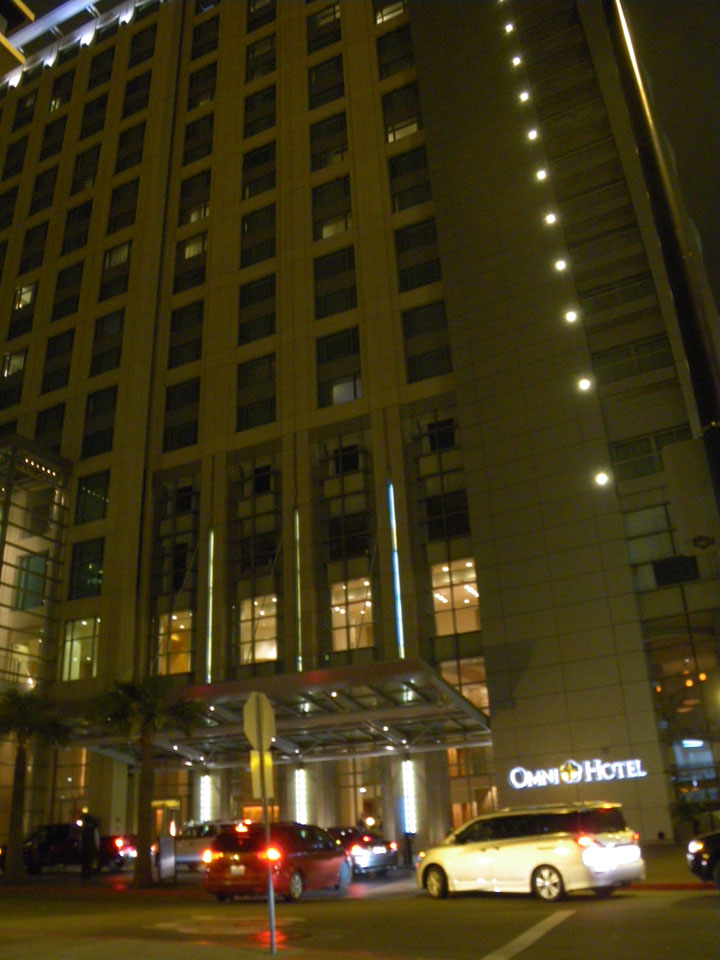 Mit dem Gepäck ging ich noch einen Shrimp Burrito essen und fuhr dann mit Bus #30 bis Downtown. Das restliche Stückchen mit dem Taxi zum Omni Hotel. Inzwishen war ich sehr müde. Einchecken klappte super – 19. Etage fast oben, nur eben ein behindertengerechtes Zimmer aber egal. Das Hotel ist super – wirklich 4 Sterne. Ich habe Blick auf den Petco Park und die Coronado Bridge. Hier stieg eine Internet Retailer Konferenz, da hätte ich das Hotel fast noch auf Firmenkosten buchen können.