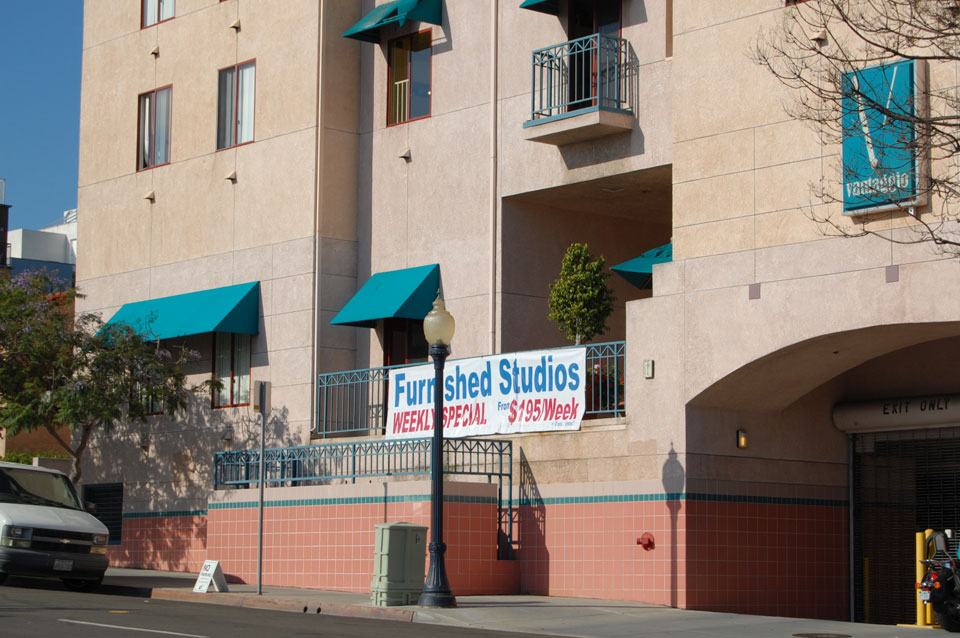 Heute hingen ein paar Banner an den Vantaggio Suites, dass das Weekly Special ab $195+Tax für ein Zimmer gilt. Das sagte mit am Telefon anders. Jetzt habe ich Hotels, ist ja auch OK.