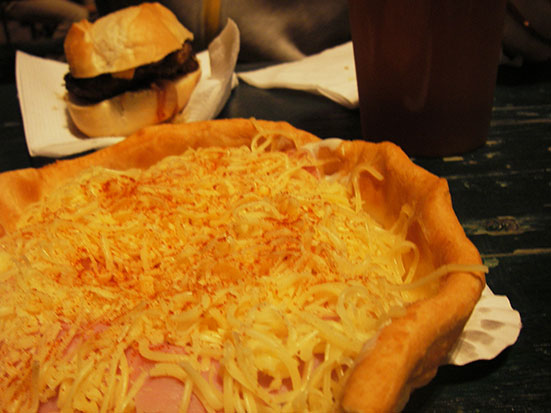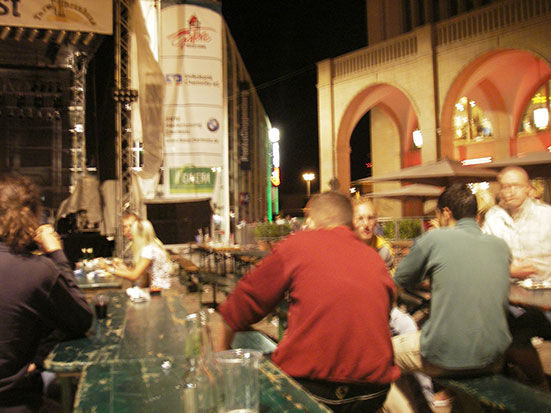 Mit Hunger und Durst hatten zum Glück noch ein paar Geschäfte geöffnet. Ich hatte einen Ungarischen Fladen mit Käse und Schinken. Der rutschte gut mit Bier und obwohl zu der Uhrzeit nicht mehr so viel los war, kam’s gut.