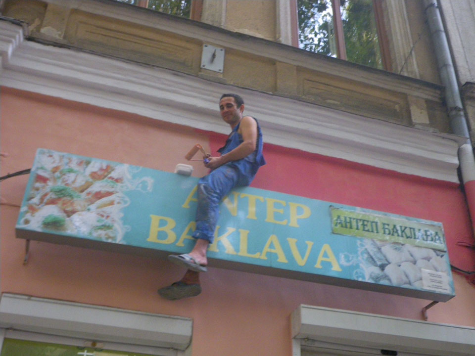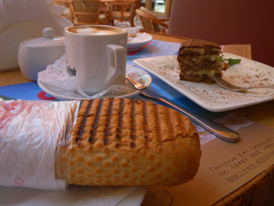 Bei Mr. Sandwich gab’s Frühstück – ohne Widerrede. Sandwich und Kuchen und alles gut. Einkaufen und dann mit der Marshrutka in die Stadt.