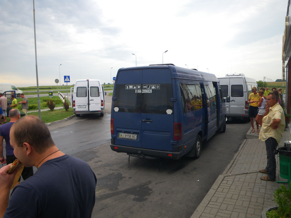Die Marshrutka nach Kiev wurde erst noch bereit gestellt – noch ein Chat mit einem, jetzt verheirateten, Kumpel. Dann gegen 3 ging’s los, alle Plätze verkauft. Ich hatte einen Platz mit ausreichend Beinfreiheit. Die Hitze drin war extrem, später kam noch Dieselgeruch dazu – die ganze 5 1/2 h. Einmal wurde kurz Pause gemacht aber ich war froh, als das Ding vorbei war.
