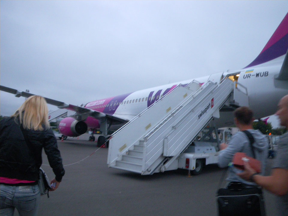 Ich überlegte auf der Fahrt, einfach in der Ukraine zu bleiben und mal zu sehen, was geht. Es blieb bei den Gedanken auf ’nen radikalen Umbruch. So war ich dann auch in 15-20′ – ein Dorfflughafen quasi. Das Ding war noch kleiner als Altenburg, Wizzair fliegt also jetzt von hier. Nach dem Einchecken holte ich mir ein paar Belegte Bemmen und einen Kaffee. Ein älterer Deutscher hatte ein paar Fragen, war geschäftlich in Kiev und reparierte Kernspintomographen. Da musste der Zoll für sein Werkzeug wohl auch gut geschmiert werden.