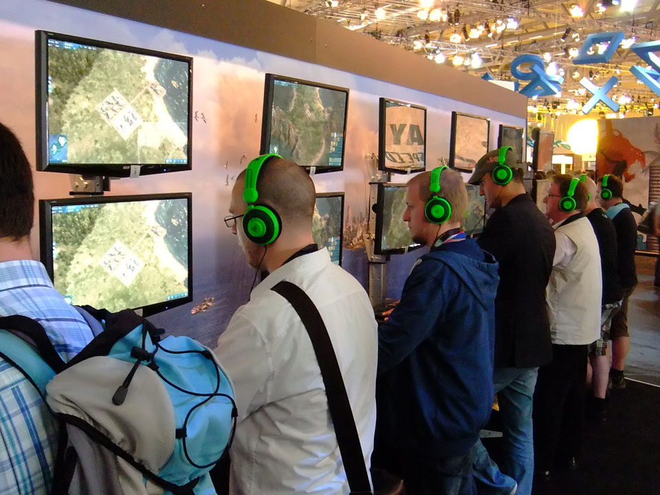 Das Treffen mit den Münchnern klappte nicht. Ich aß ein Sandwich, während ich auf meinen Kontakt wartete aber er hatte andere Termine. So checkte ich hundemüde die gigantischen Messehallen und riesigen Stände. Viele Booth-Babes standen auch schon bereit, einige Publisher ließen sich die Show einiges kosten. Das steht in ziemlich krassem Gegensatz zu unserer Geschäftslage aber so ist das nun Mal. Die meisten großen Spiele sind online und viele auch Free-to-play. Wenig neues, oft die gleichen Spiele, wie letztes Jahr.