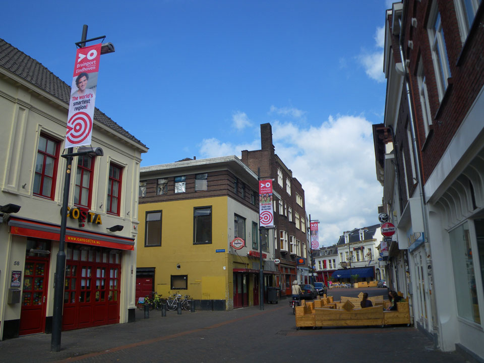 Leergefegte Straßen in der Partmeile. Ich holte mir ein Frühstück und checkte kurz mit Sack und Pack die Innenstadt. So hatte ich Eindhoven mit dem „Blob“ auch vorerst genug gesehen, vielleicht bleibe ich hier nochmal länger für eine Radtour.