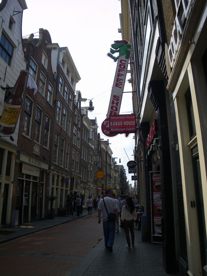 Nach Amsterdam waren es nur 50′. Das Irische Hostel „Durty Nelly“ im Rotlichtbezirk, der eigentlich jetzt nur voller Bars und Touristenshop ist,