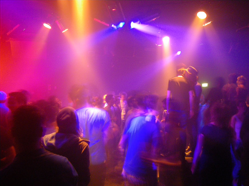 Vor’m Studio-80 standen immer noch Leute in der Schlange. Einige wurden abgewiesen. Als ich dann dran war, wurde ich über die Musik ausgefragt. Ostton spielte auf, was ich denn für Musik mag und was da so gespielt wird – „Techno“. So ein Quiz zum Musikgeschmack war mir neu, die wollten hier sicherstellen, dass die Stimmung gut wird und die Leute auch die Musik mögen. Ich glaube, hier war ich einst zu Luke Slater.