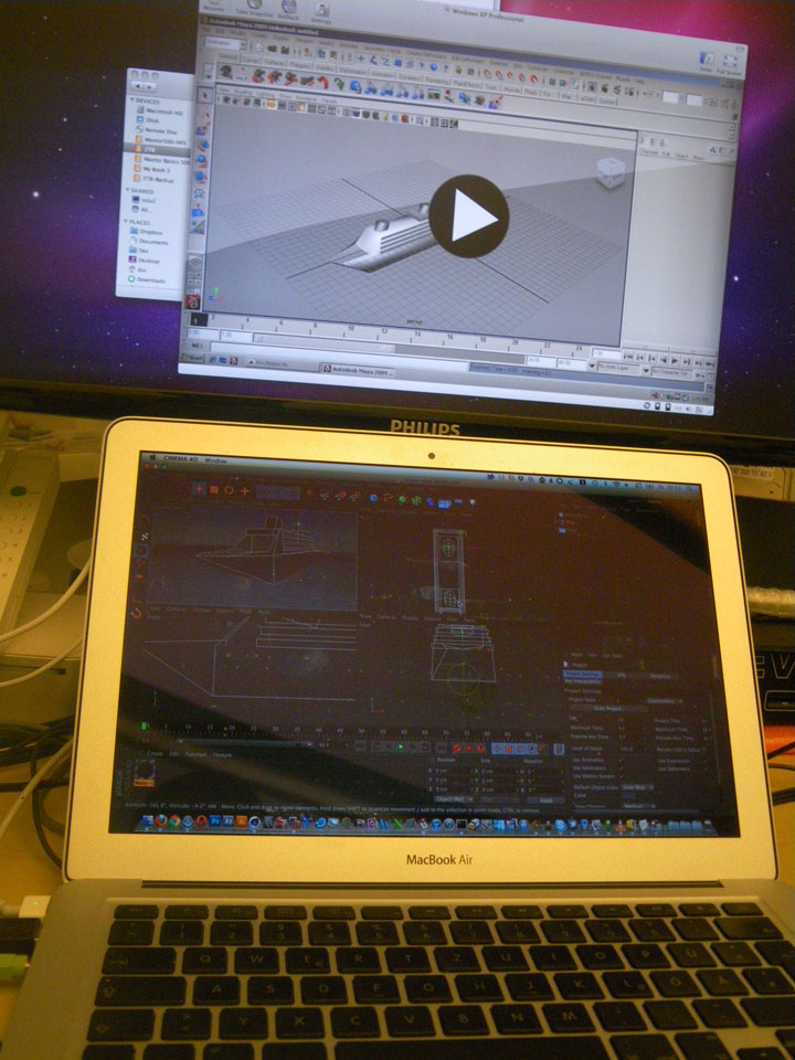 Die Texturen muss ich noch machen und einige Details addieren. Ingesamt war ich erst mal zufrieden, es gibt viel zu lernen. Wenn ich noch Maya ausreichend beherrschen würde, wäre ich noch mehr unabhängig. Auch für kommende Unity3D Spiele ist Maya besser zu gebrauchen. Maxon Cinema ist eben mehr was für schnelle Effekte.