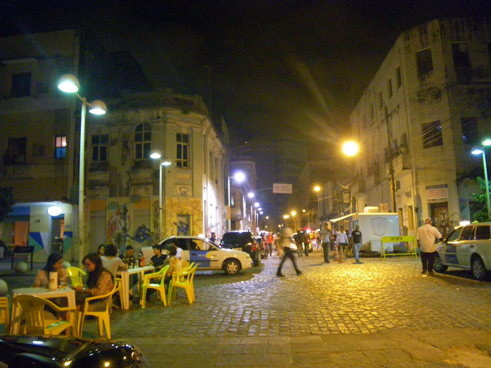 Gegen 1 ging’s los in’s Nachtleben. Ich wollte zum Boate Nox, was der beste Elektronik-Club hier sein soll. Das war einmal – nichts mehr. Mit dem Taxi dann zum Sampa, R$8 zu wenig zurück bekommen und drinnen nichts los. Das nächste Taxi zu einem Restaurant, was aber gerade schloss. Der Taxifahrer meinte, da wäre Tanzen aber nichts da und so am Ende zum Downtown Pub wieder. In diesem Bezirk war viel los. Die meisten trinken aber auf der Straße.
