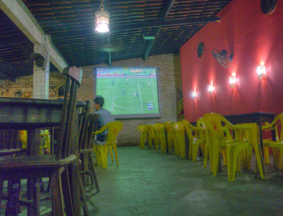 Nach ’ner Dusche wollten ein paar ein Fußballspiel in einer Bar anschauen. Ich ging mit und hatte viel Bier. Das Spiel zwischen zwei Mannschaften aus Sao Paulo war eher nichts. In der 2. Halbzeit gab es längere Stromausfälle in der Bar. Während der Zeit verpassten wir wenig, es blieb bis zum Ende beim 0:0.