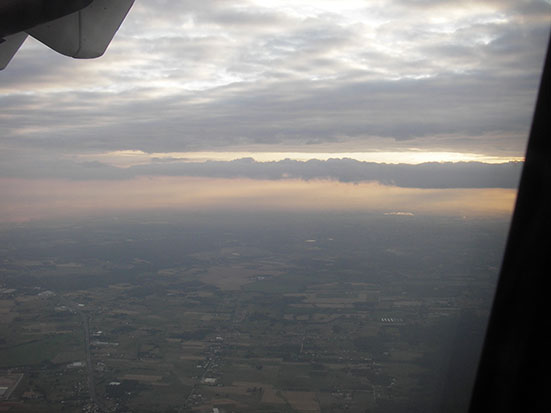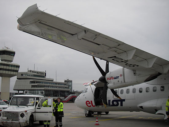 Der Propellerflieger war klein und mit ca. 8 Leuten + Besatzung auch recht leer. Kein Wunder, dass germanwings ihre Warschaustrecke noch nicht in Betrieb genommen hatte.