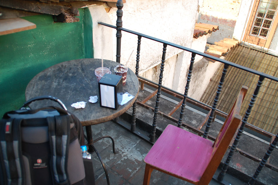 In einem Açai Laden mit Dachterrasse saß ich, las iPod, knipste Katzen, die über die Dächer huschten. Ein wirklich schöner Tag – Sonnenuntergang.