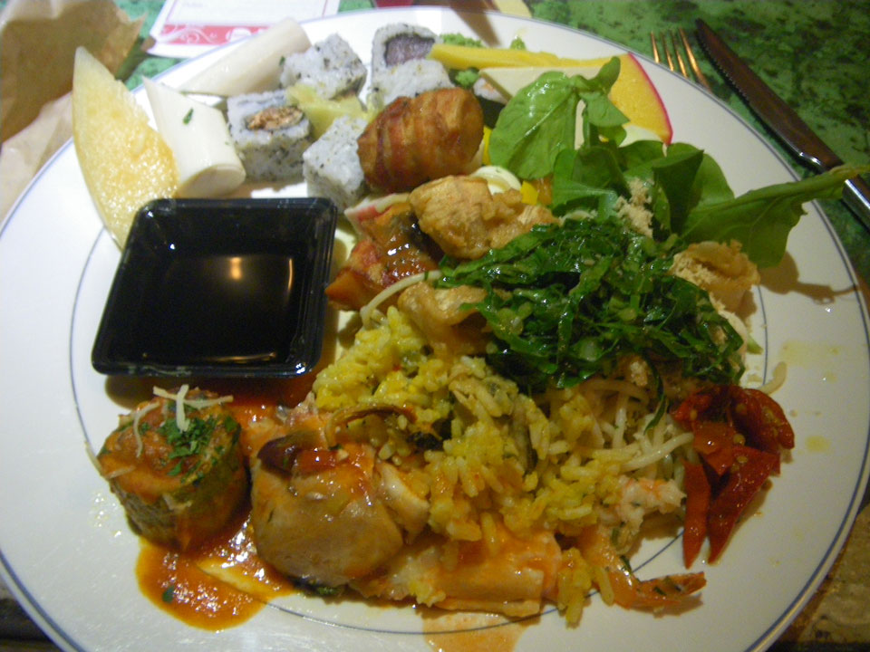 Internet und so und dann im guten/teuren Boom Kilo. Dieses Mal wurden es 700 Gramm, ich hatte kein Mittagessen. Das schmeckte wieder super – Sushi, Shrimps und feine Salate. Mit Getränk (BRL 4) umd 10% Service kam ich auf BRL 38 raus.