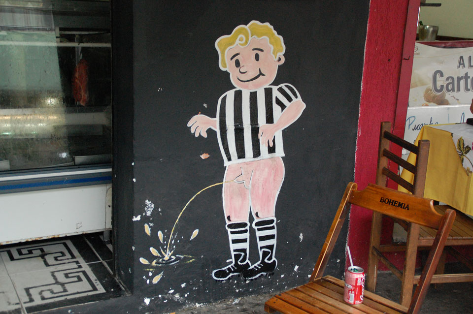 Ich fand mit ein paar Fragen den Weg zur Station und kaufte mir für BRL 36 das Ticket, morgen 17:00. Auf dem Rückweg ein fluffiges Stück Kuchen & Cappuccino. Einfach mit der Nikon durch die Straßen zu schlendern macht selbst bei dem Wetter Spaß. Fußball ist immer und überall zu sehen, bei Toren der hiesigen Mannschaften gibt’s Böllerschüsse.