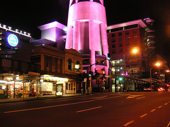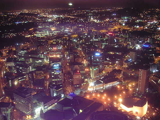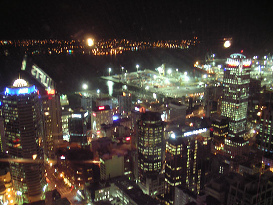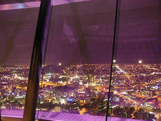 Ich wollte heute zum Sky Tower. Natürlich kann man da auch mit den Fahrstuhl hoch fahren und so war ich dann auch gegen 21:00 dort. So holte ich mir ein Sun & Stars Ticket ($20), was nur $5 mehr kostet als das normale einmalige und man auch nochmal am Tag hochfahren kann. Dazu noch für $3 die Sky Lounge, die nochmal einige Meter über der normalen Aussichtsplatform tront. Also fein. Es waren recht wenige Touristen unterwegs und im Lift (mit Glasfenster im Boden) wurde man schnell nach oben gezogen. Die Ohren bekamen das auch zu spüren — Flugstart…
