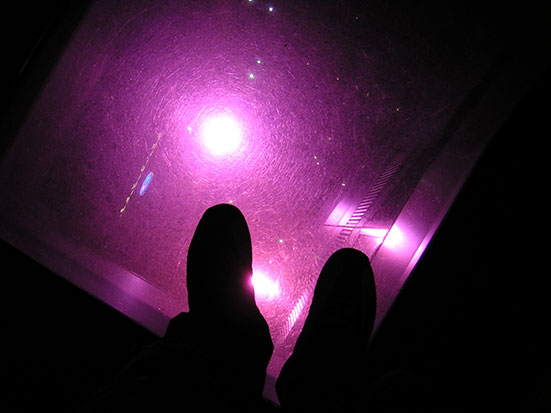 Hier waren ebenfalls Glasfenster im Boden eingelassen, wie auch im Tokyo Tower – woran mich das gleich erinnerte. Hier hatte ich jedoch beim Drübergehen erst mal ein mulmiges Gefühl. Hui…