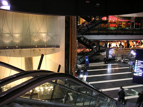 Natürlich ist das alles supersicher aber die Fenster waren größer und ohne extra Gitter. Hörte ich da was Knacken? Nach ein paar Runden auf dem Level nahm ich den nächsten Lift noch höher. Die Lift-Operatorin erzählte noch ein paar Details. Ganz oben angekommen waren noch weniger Leute aber die Aussicht war Spitze! Ich knipse herum; wackelfrei und scharf wurde dabei nicht alles. Ich fand’s sehr schön und mit ein paar Indern ging es dann wieder zurück. Ich setzte mich noch bissel hin, schaute mir das alles in Ruhe an und gegen 22:00 bin ich dann wieder ‚raus. Wochentags macht der ohnehin um 22:30 zu.