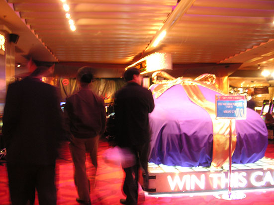 Im Komplex ist auch ein Casino untergebracht. Juhuu! Videopoker! Am Eingang war ich etwas unsicher weil der Bouncer irgendwas redete (nicht mit mir?) und man wollte tatsächlich meinen ID sehen. Dann suchte ich herum aber nirgens gab es Videopoker Maschinen. Das hatte ich fast erwartet, da man da ja auch gewinnen könnte… Es klingelten jede Menge Slot-Machines, die auch nur mit Videoscreens ausgestattet waren. Damit kann man ja die Leute am besten erleichtern. Ansonsten spielten die Japaner und sonstigen Touristen Roulette, Black Jack, Pai Gow und was es sonst noch an Standards neben den Slots gibt. Im zweiten Level fand ich dann ganze vier(!) Videopoker Spiele. 3 waren besetzt und der letzte wollte meinen $20 Schein nicht nehmen. Dann wurde einer frei. Ich spielte, win, lose, win, lose und hörte nach vielleicht 5 Minuten mit $8 Gewinn auf. Die Maschine gab nur $2 Coins ‚raus also muss man manchmal den letzten Dolar verzocken.