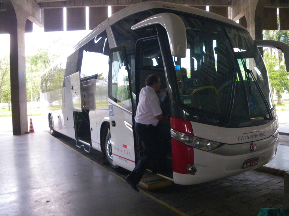 Meine Wäsche war nur halbtrocken aber es musste los gehen. Mit dem Taxi zum Busbahnhof, schnell ein Ticket und was zu essen geholt – 13:00 mit dem Bus Richtung Floripa.