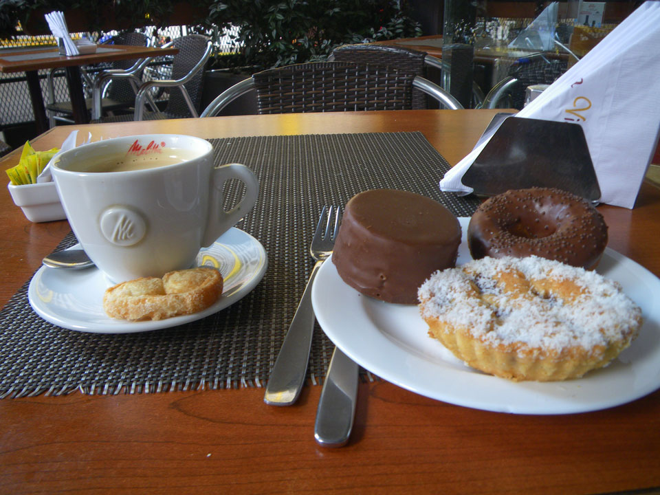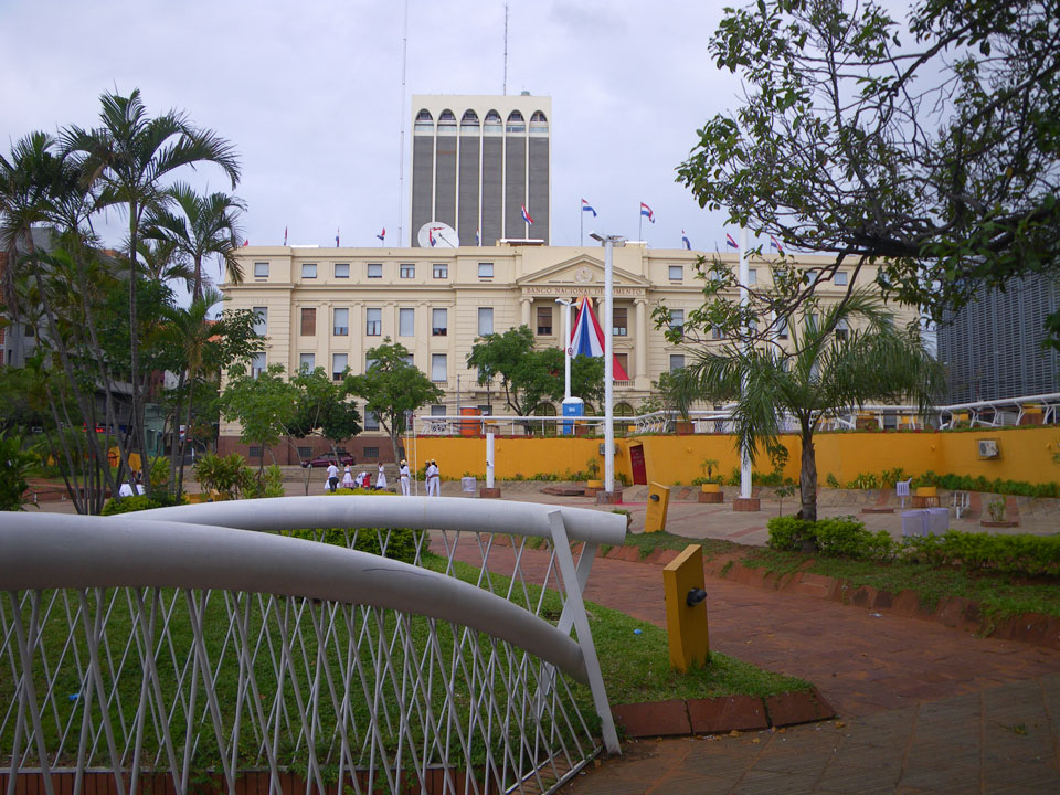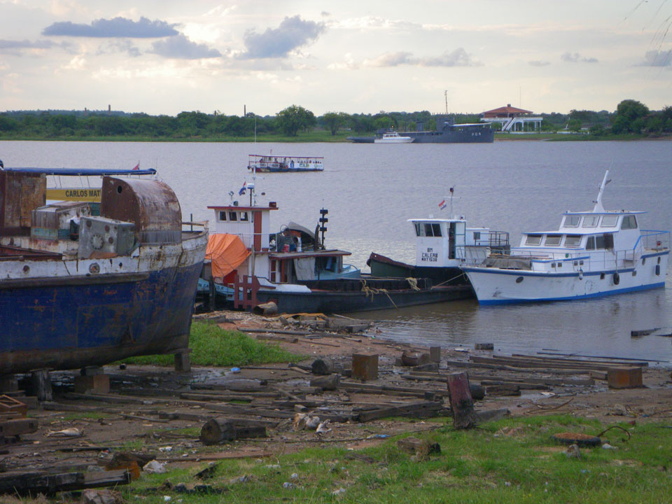 Die Straßen Asuncións waren zum Sonntag wie leer gefegt. Ich brauchte was zu futtern und fand ein Café – „Vienna“ oder so. Die gezuckerten Sachen spülte ich mit gleich 2 Cafés runter – PYG 27.000 . Süß und satt ging ich die Straße runter zum Wasser. Viel Polizei patrouilliert auf den Straßen, so fühlte ich mich auf den leeren Straßen relativ sicher.