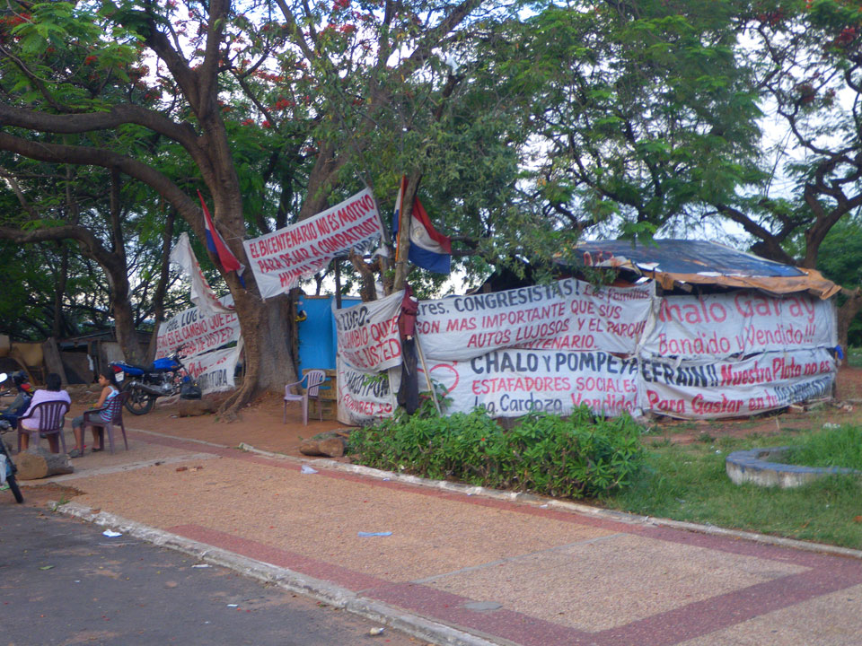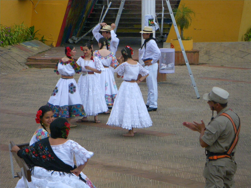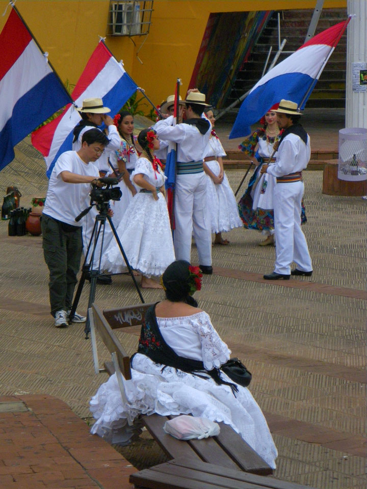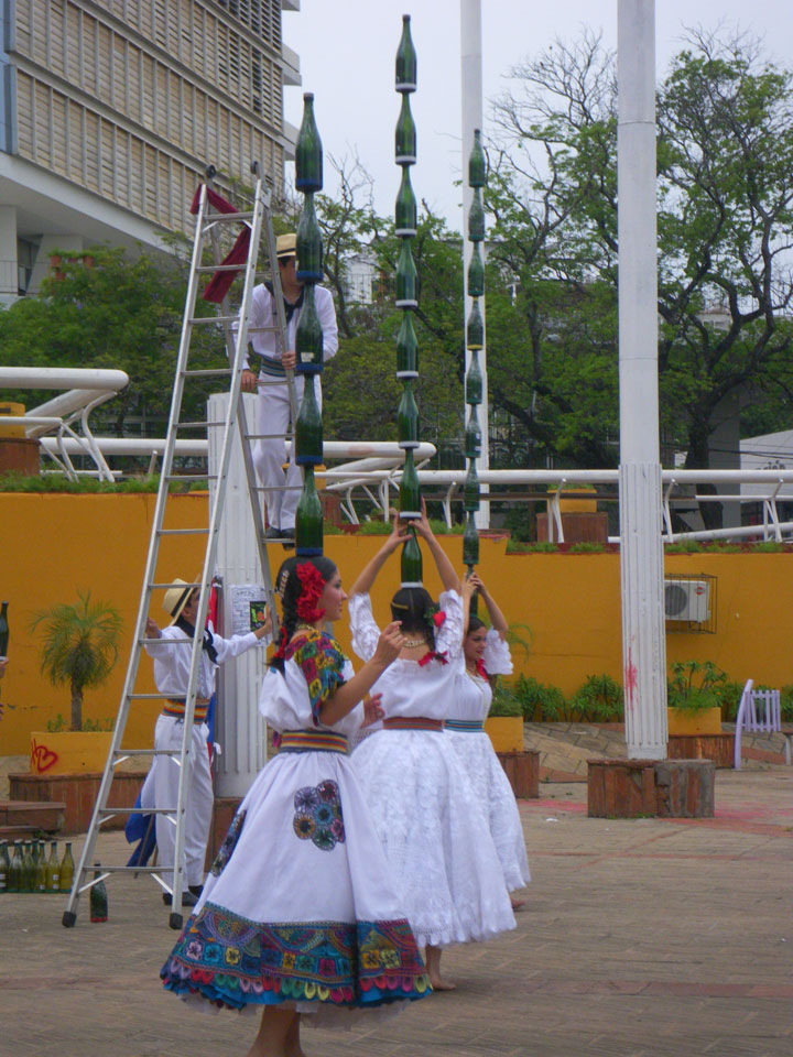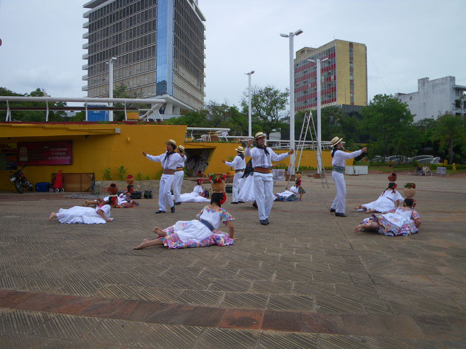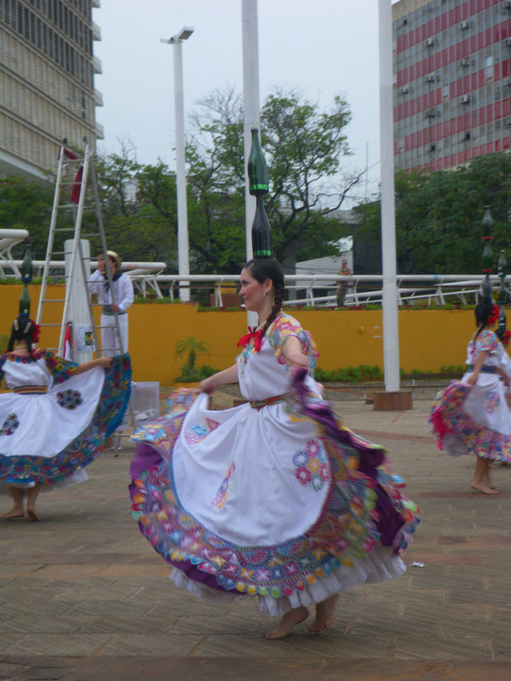 Am Independencia Platz bereiteten sich ein paar Leute in Tracht auf irgednwas vor. Ich wartete, während sich Regenwolken zusammenzogen. Es blieb bei ein paar Tropfen, dann wurde getanzt und gefilmt. Ein gutes Glück, dass ich zu dieser zeit dort war. Die Mädels balancierten bis zu 15 Flaschen auf dem Kopf, das war einigen Beifall wert. Die Flaschen auf dem Kopf hatte ich das letzte mal auf Yucatan bei den Mayas gesehen. So ging es nach dem Ende weiter, Paraguay ist doch ganz OK bis jetzt.