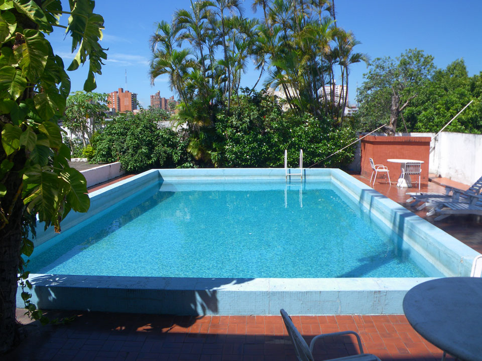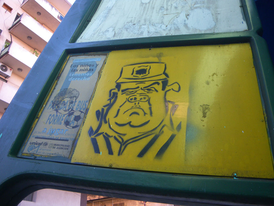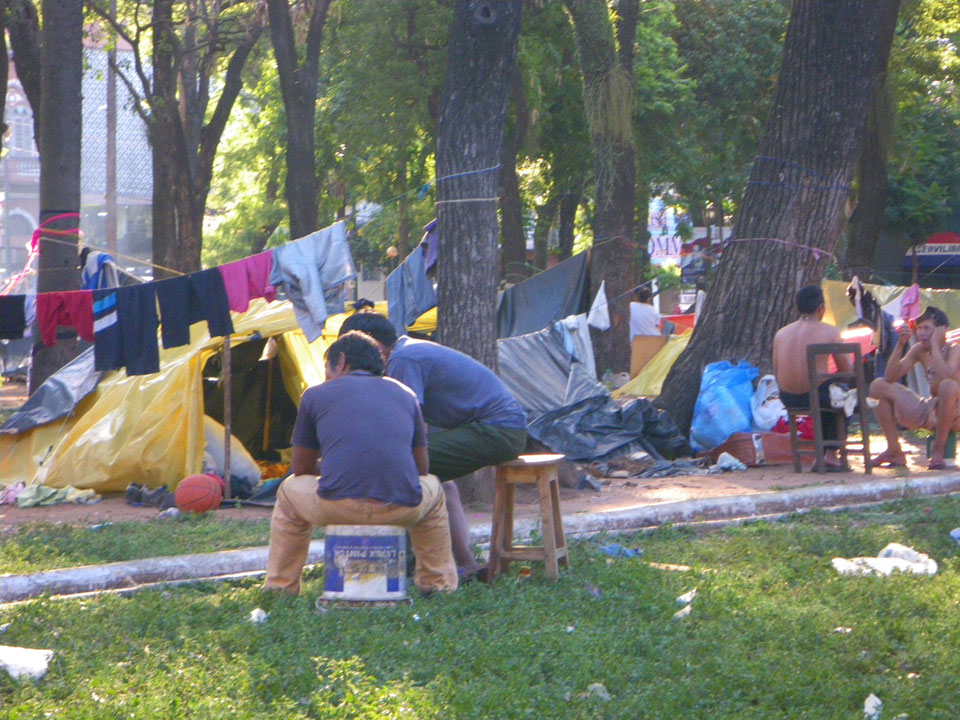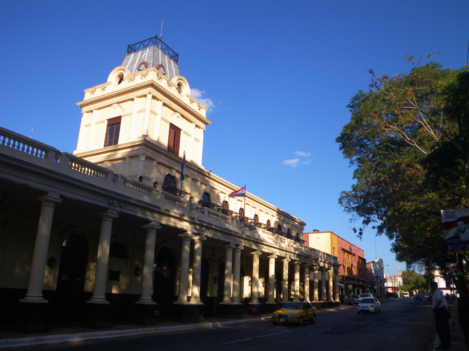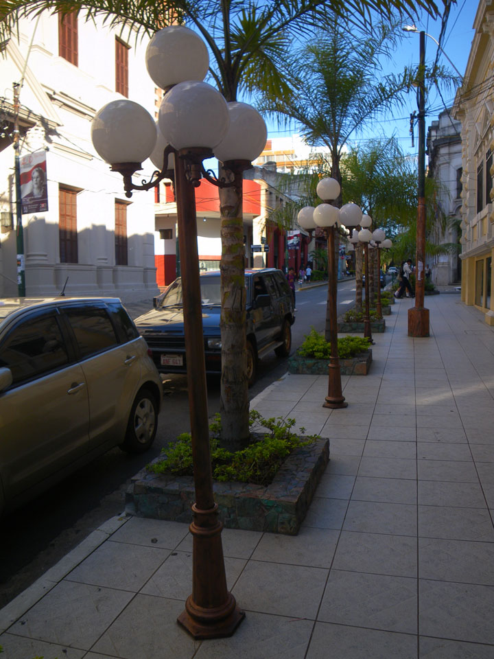 So checkte ich einige Straßen mit vielen Geschäften, kam auch zum unspektakulärem „Casa de la Independencia“. Der Uruguaya Platz schien von Indios besetzt. Viele Behelfs-Zelte aus Plastikplanen, Banner, Wäsche auf Leinen dazwischen und Piss-Geruch. In Paraguay läuft eben auch nicht alles glatt. Die Gegensätze sind manchmal stark sichtbar – meistens sieht es aber einfach nur ärmlich aus. Ich kann bisher ganz gut untertauchen, knipse mit der Pentax vor mich hin und war vor der Dunkelheit wieder im Hotel.