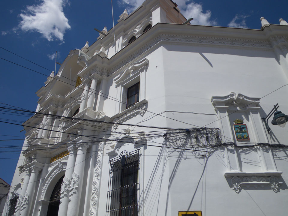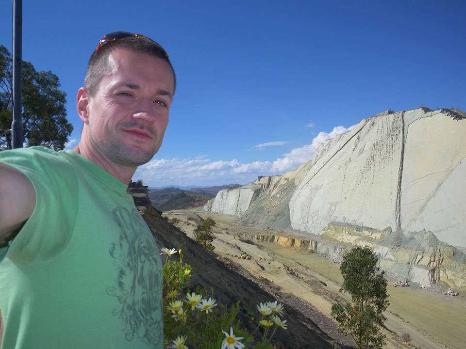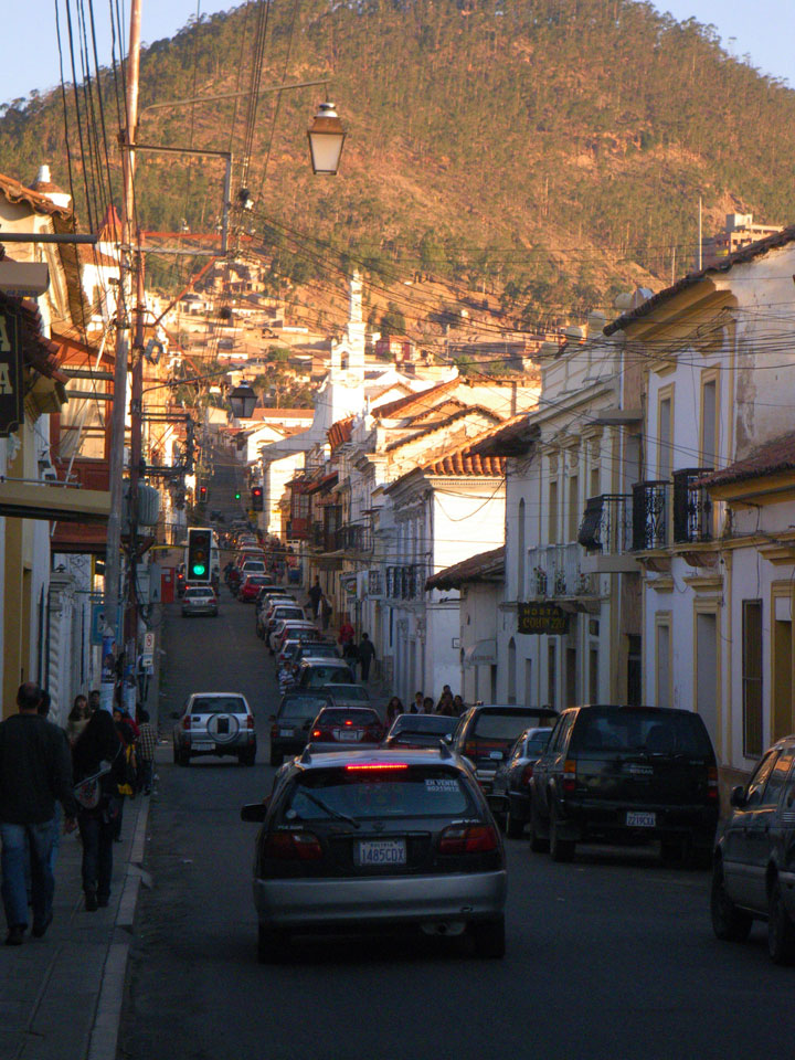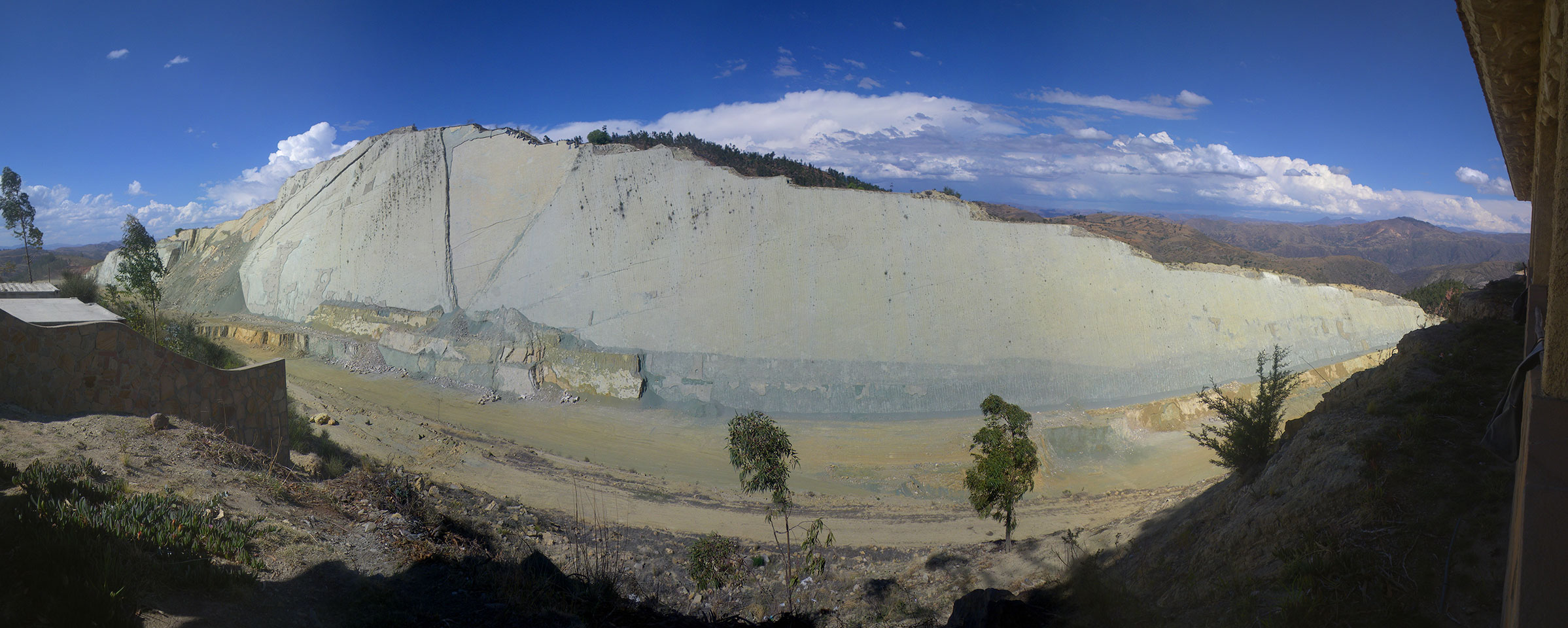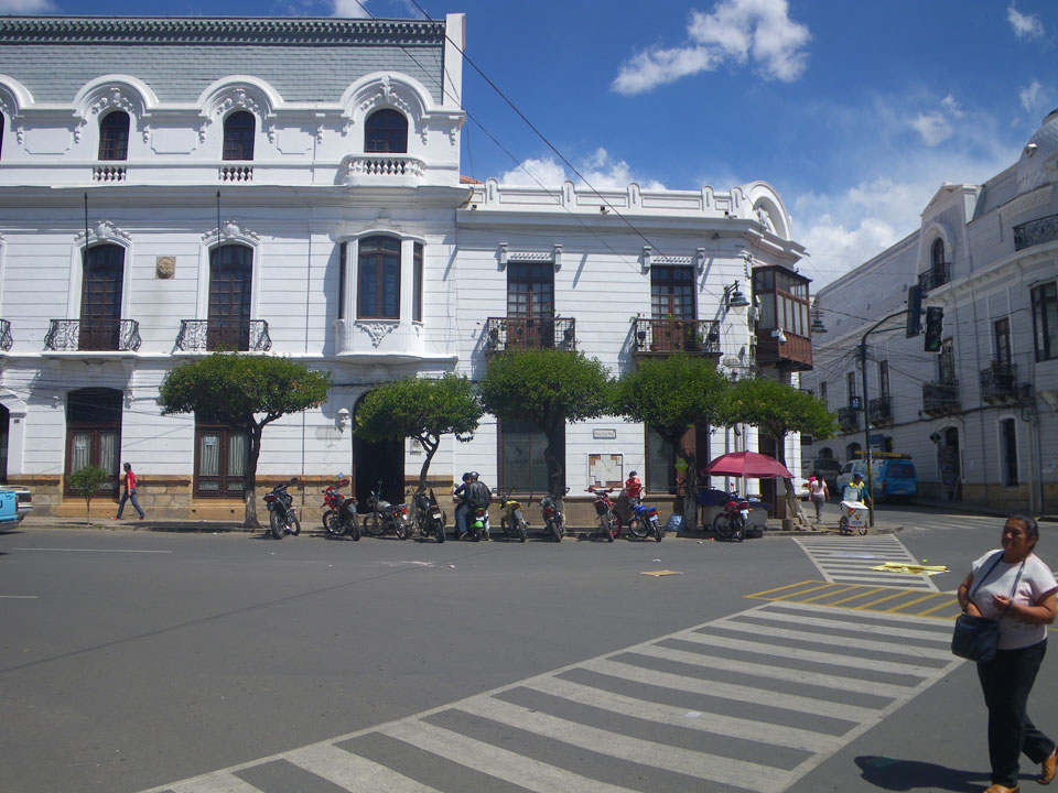 Mit dem langsamen Internet machte ich Schluss und ging 14:00 zum 25 Mayo Platz für die Dinosaurier-Tour. Hier in Sucre gibt es Fußabdrücke von Dinos, die auf einem halb-trockenen Seeboden verewigt wurden. Durch die Tektonik ist das jetzt eine Wand und das wollte ich sehen.