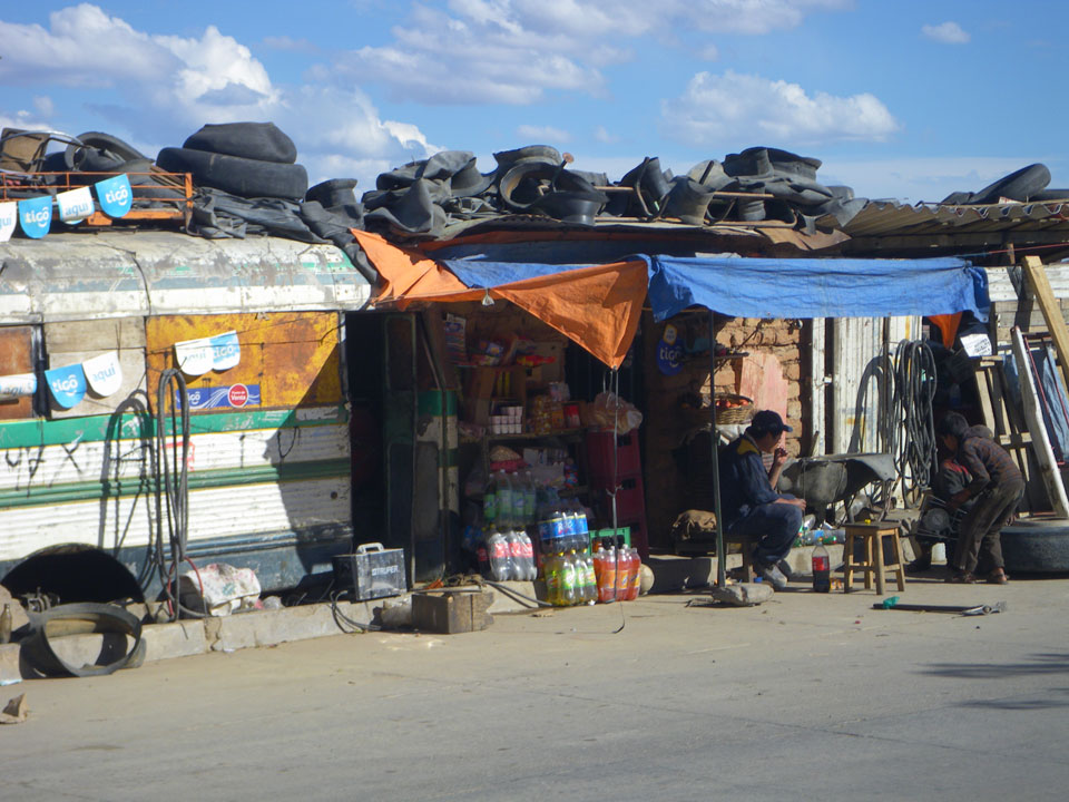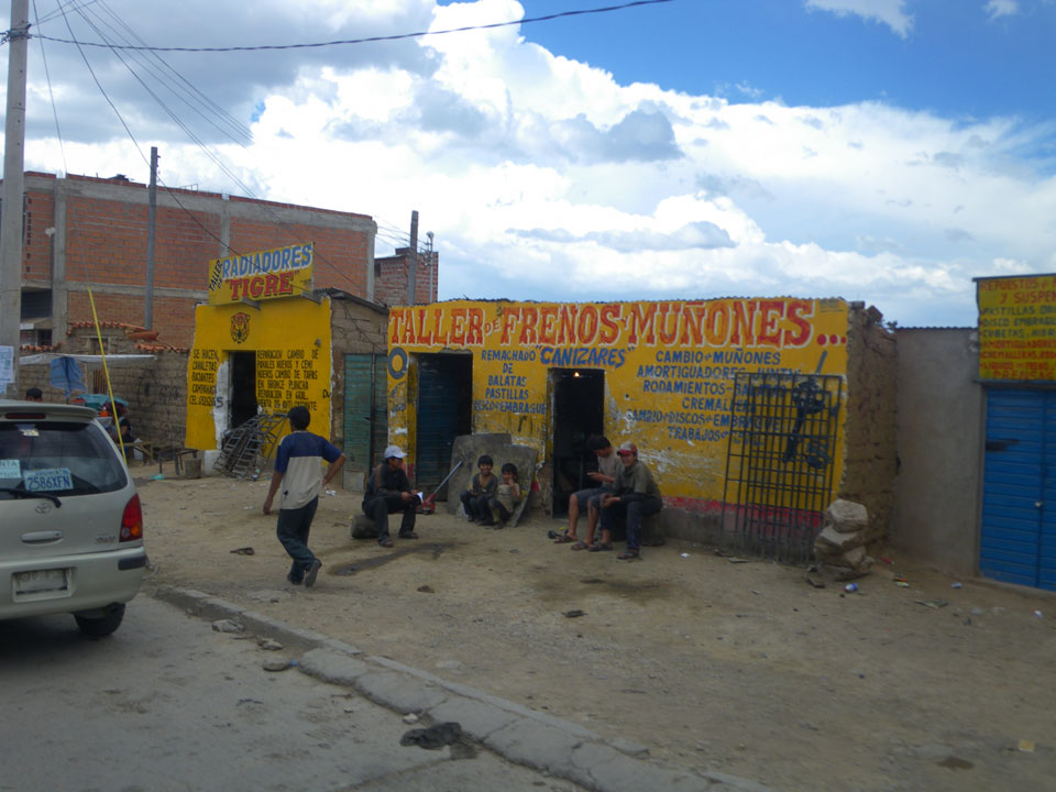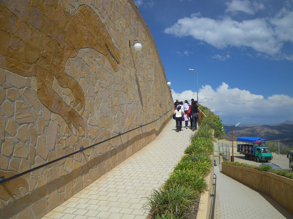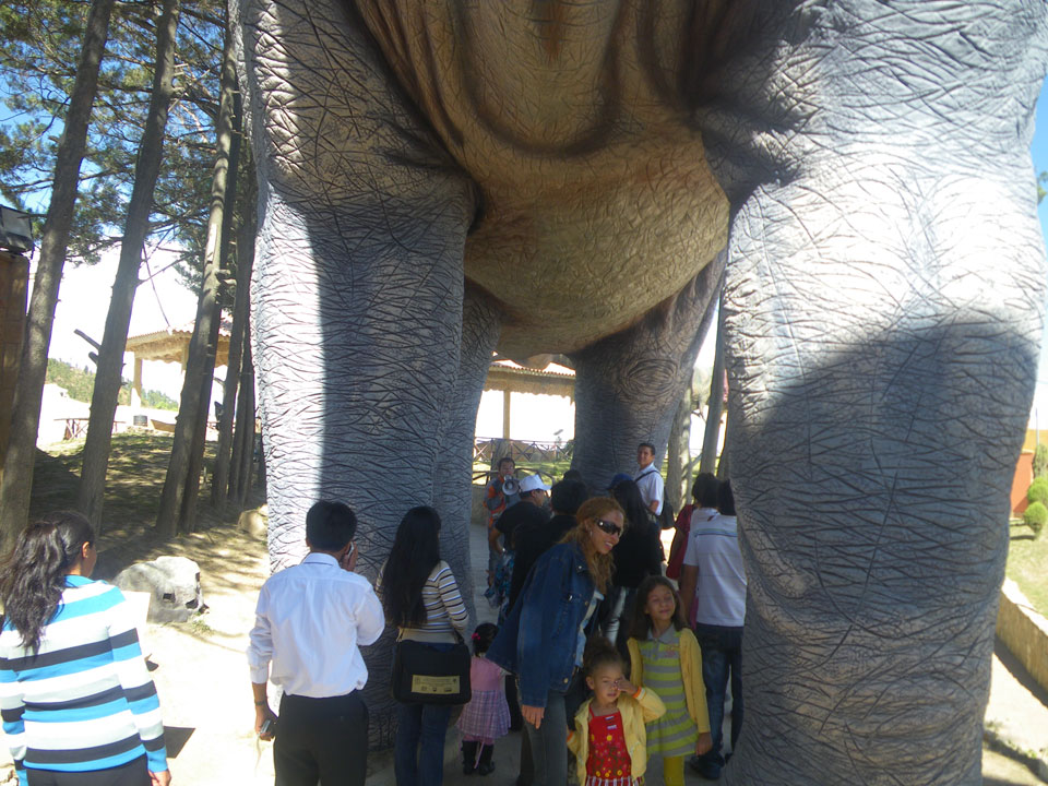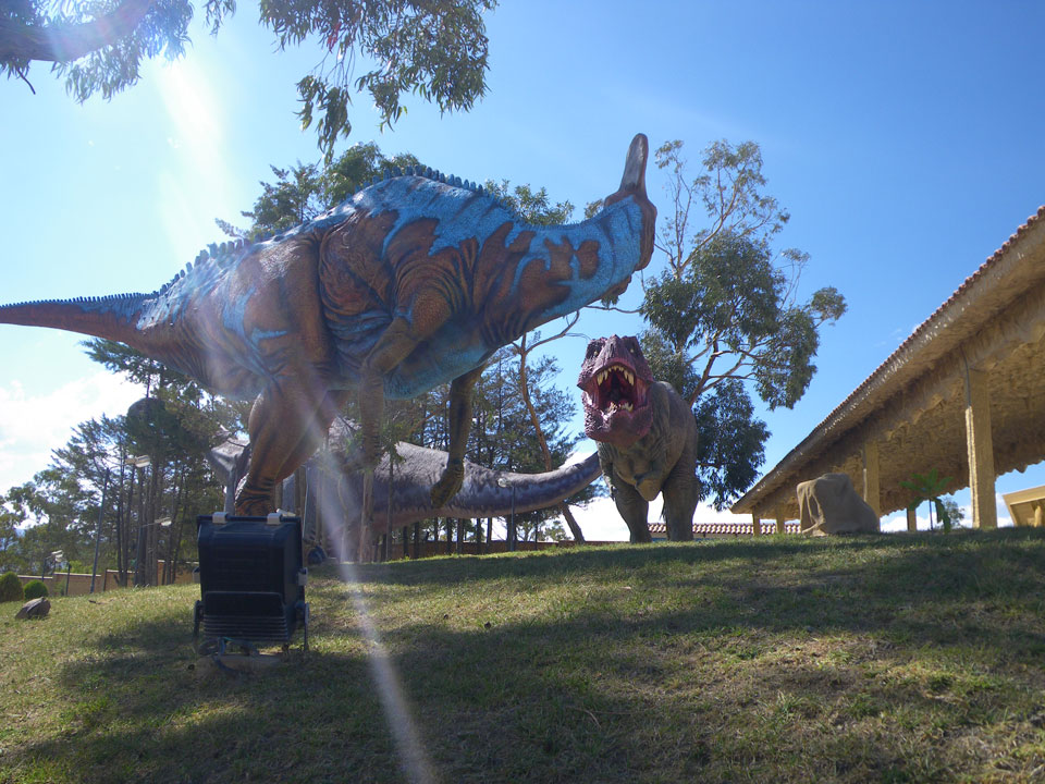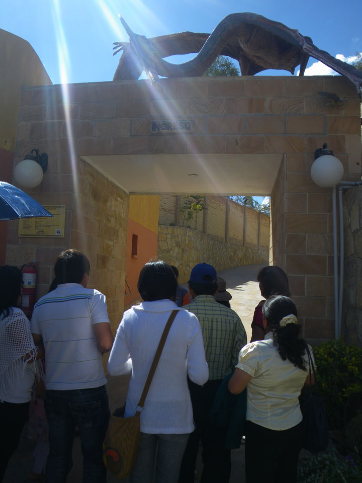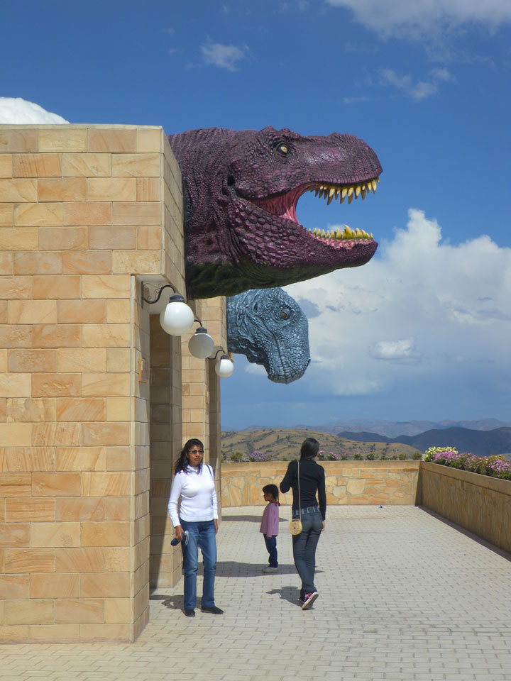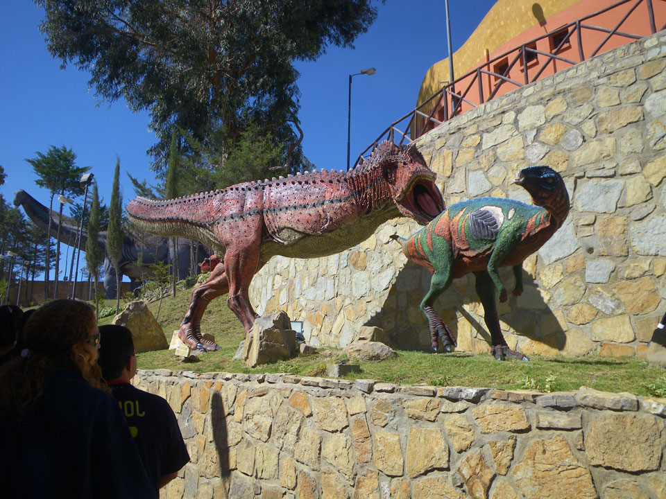 Der Transport kam 14 Bs und Touristen-Eintritt 30 Bs. Auf der Ladefläche eines umgebauten Kleintransporters ging’s in den Park und erst mal vorbei an vielen Kunst-Dinos. Für Kinder ein Spaß und besser bemalt als die Beton-Dinosaurier in Deutschland. Unterstützt von Ur-Sounds war das alles ganz OK .. für Bolivien.