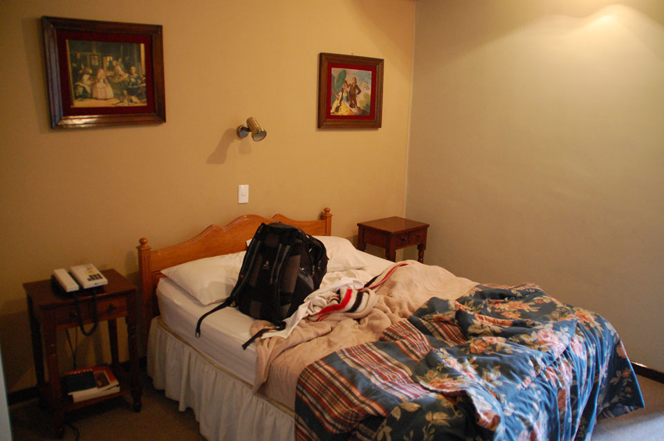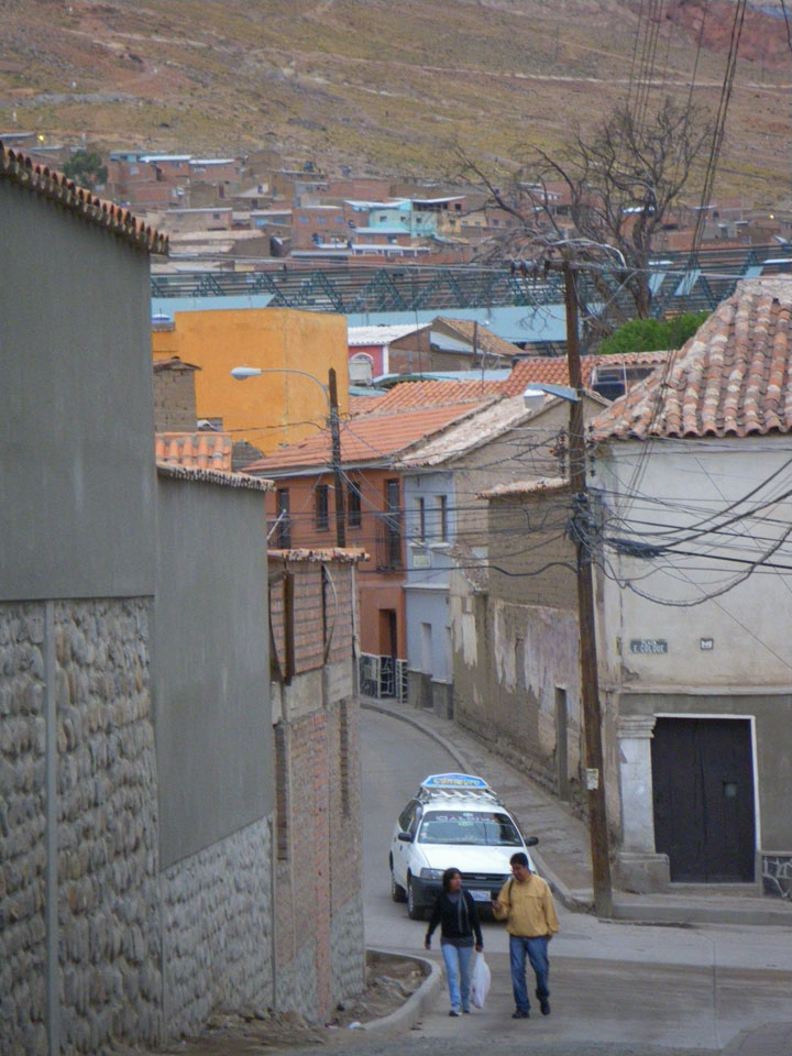 Jetzt ging’s erst mal mit dem Taxi in ein Hostal. Die hatten ein Privatzimmer mit shared bathroom für B 65 (€7), was auch gleich nahm. Glück, weil ein Twin-Room – mehr Platz. So bezahlte ich das und die Minen-Tour für 80 Bs gegen 8:30 Uhr morgen.