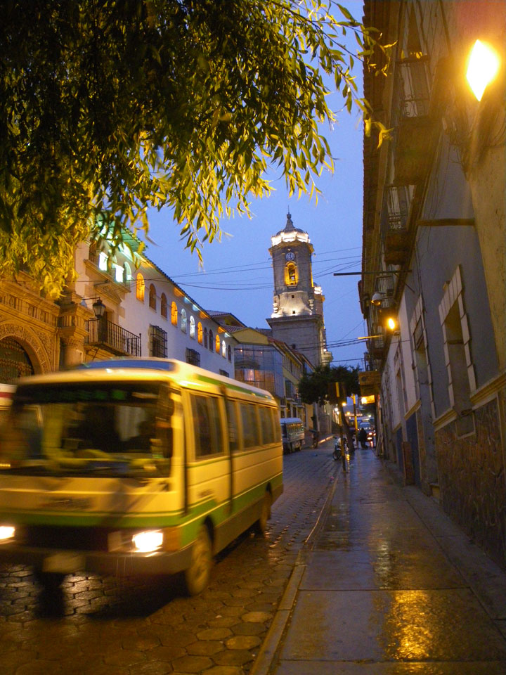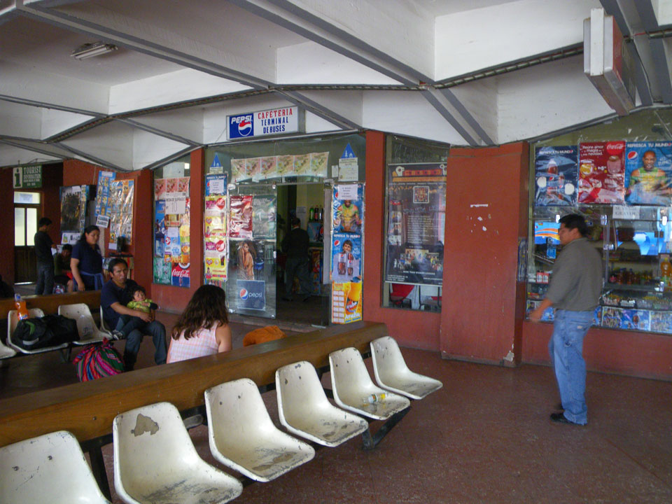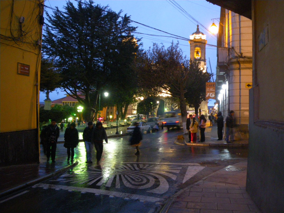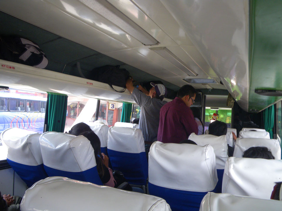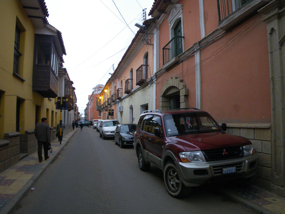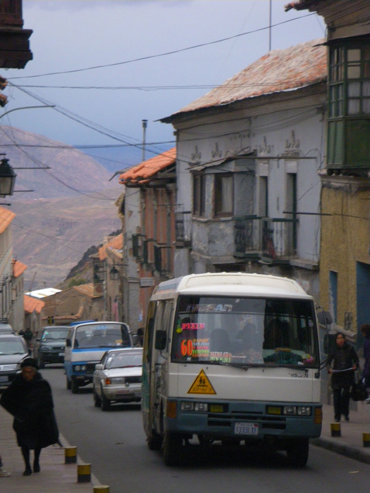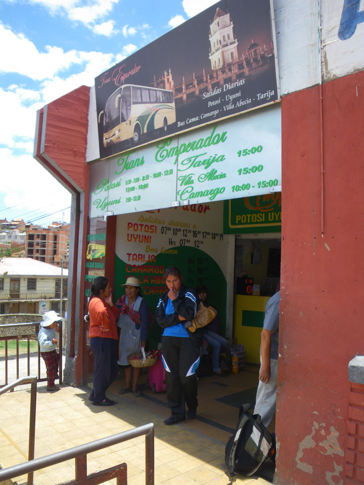 Ich packte, war kurz vor 12 ausgecheckt zum 210 Bs Preis mit extra Pass-Kopie. Ein Taxi brachte mich durch die kleinen Straßen mit vielen Autos zum Busbahnhof. Mein Voucher zur Fahrt nach Potosi wurde abgestempelt. Dann musste man nochmal B 2,50 für die Nutzung des Terminals zahlen, komisch.