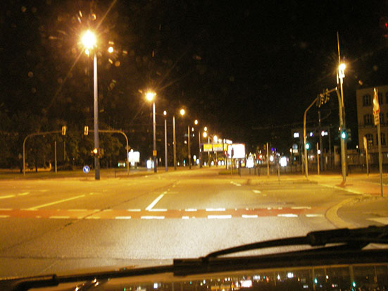 Um die Uhrzeit war wenig auf der Straße los. Mit Vollgas ging es weit über die erlaubte Geschwindidgkeiten. Es war niemand da also was solls? Auf einmal schlich sich ein Passat der Cops an mich heran. Ich dachte schon, Bullshit! Auf der Stollberger fuhr ich die erlaubten 50, das reizte die wohl und sie blinkten „Halt Polizei“. Ich fuhre weiter, bog in eine Straße, wo man halten konnte. Papiere und Führershein. Alkohol getrunken? – Nein. Da wollten sie eine Alkoholkontrolle machen. Da war ich voll bereit dazu aber dann wollten sie doch nicht mehr. So muss ich wohl weiter auf ’nnen Alktest warten. Sie düsten ab – ich musste die verlorene Zeit aufholen, schaute aber öfters in den Rückspiegel als nötig. Kurz vor halb 3 zu Hause und megafertig.