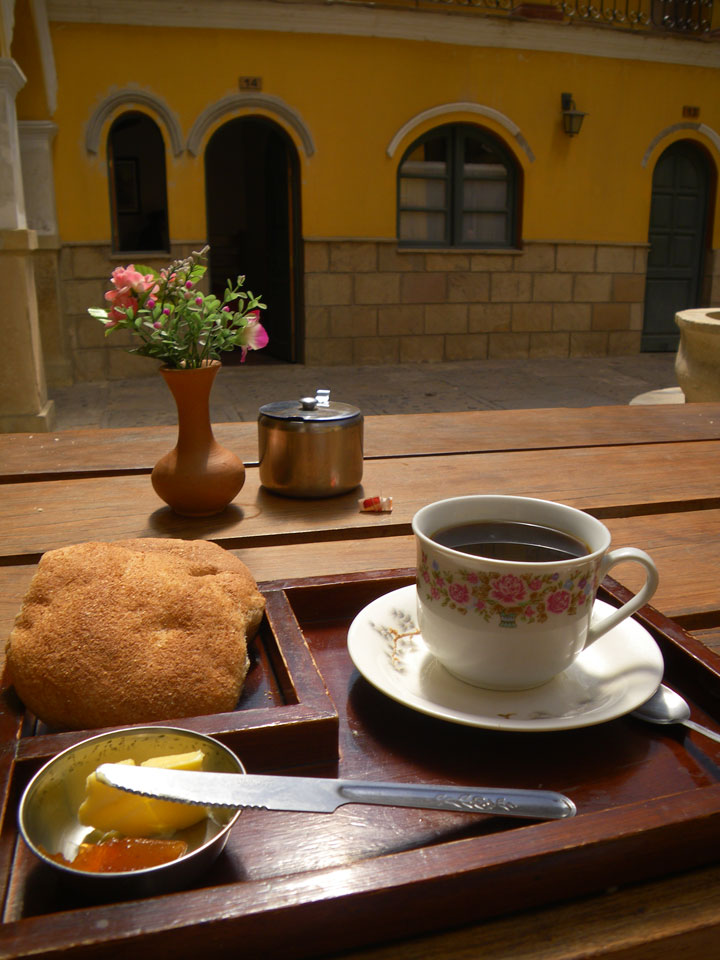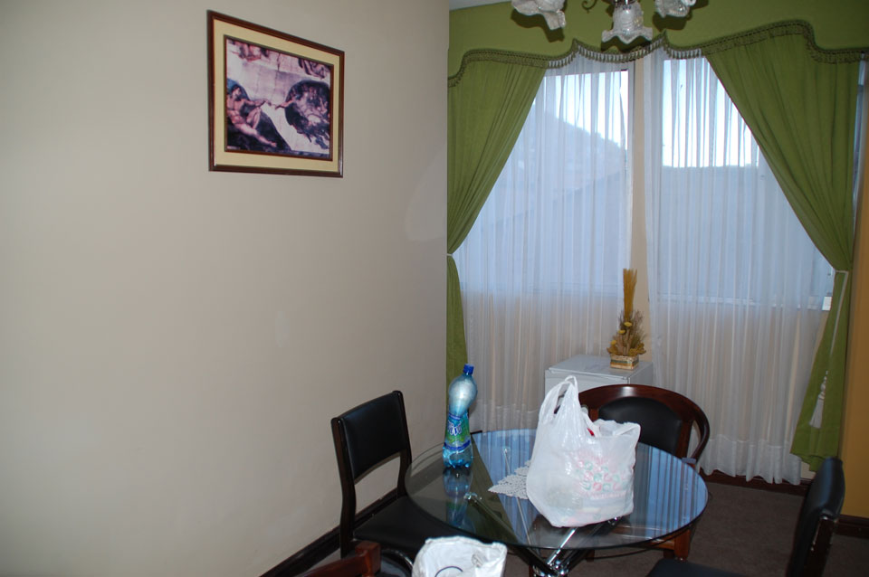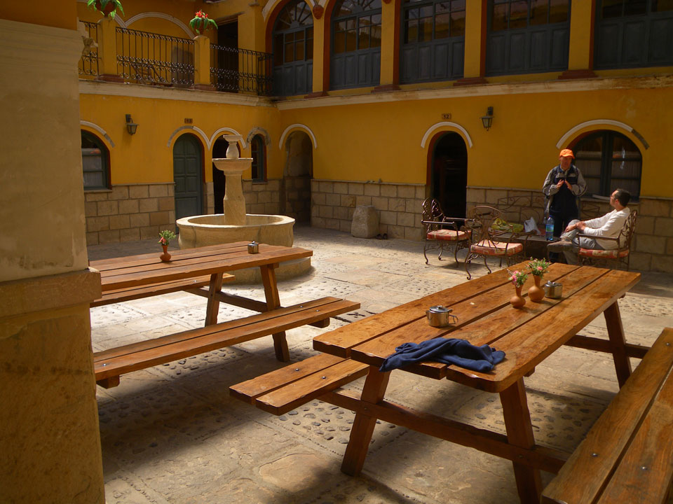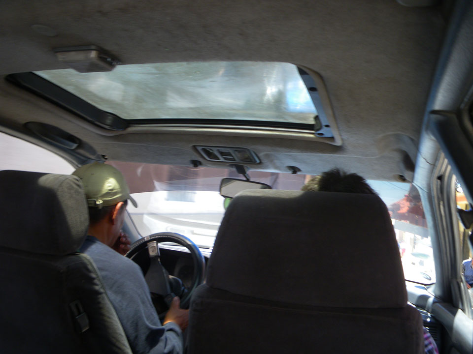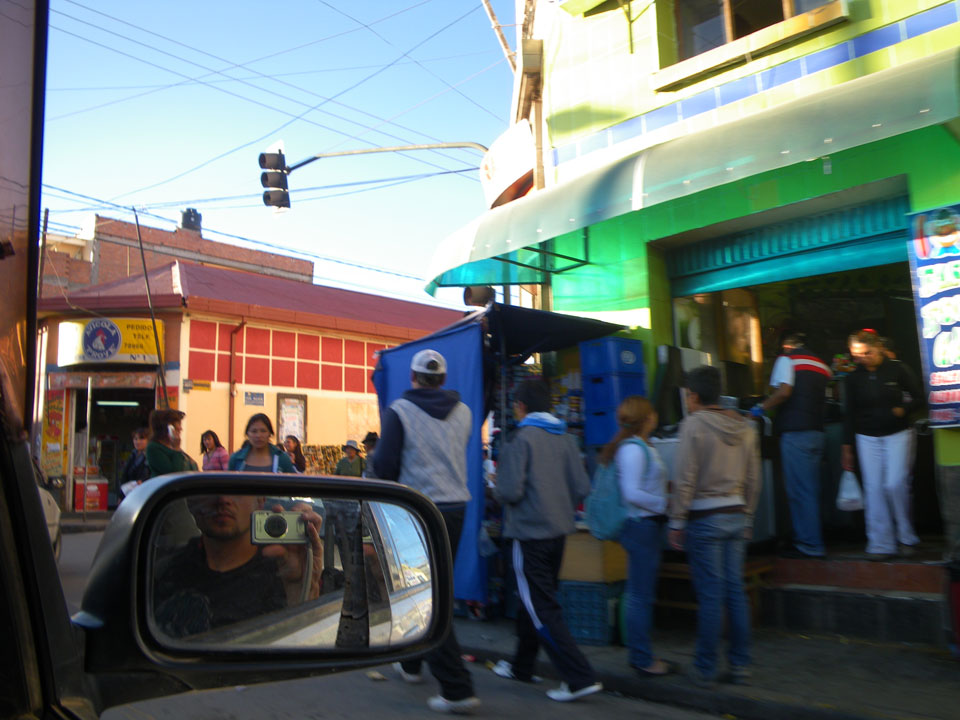 Im Bus hatte mir ein Bolivianer einen Restaurant-Tipp gegeben „Nayjama“. Mit dem Taxi dahin, hier werden die taxis eben oft geteilt. Wenn am Straßenrand jemand in die gleiche Richtung will, springt er einfach rein. Der Verkehr in den kleinen Gassen hier bewegt sich nur im Schneckentempo.