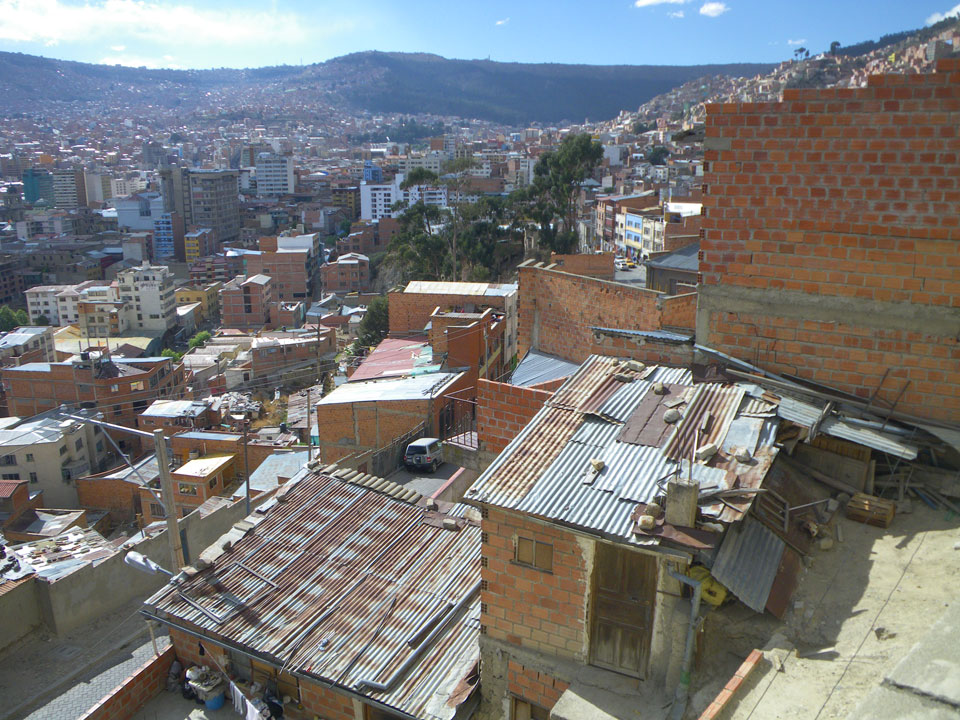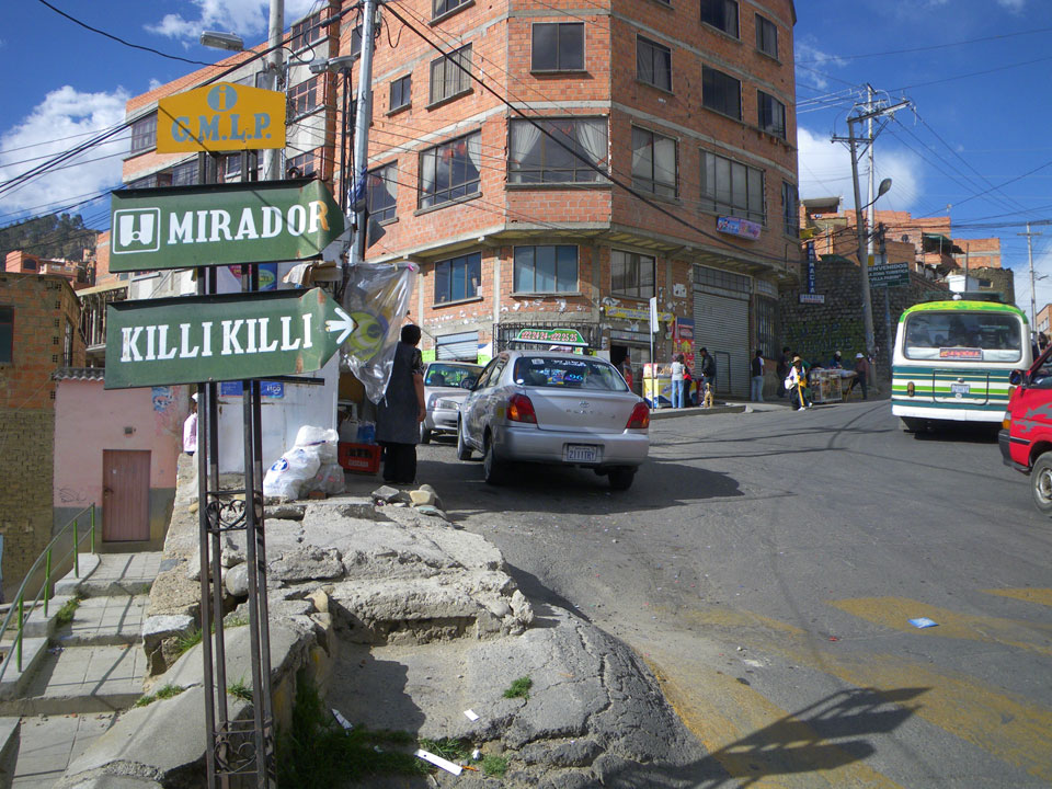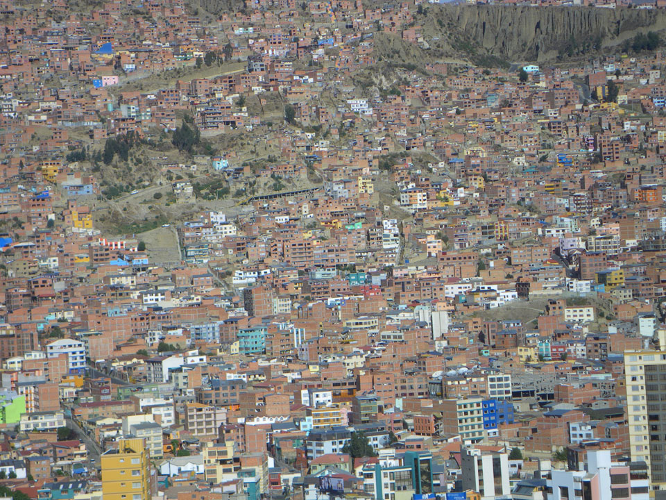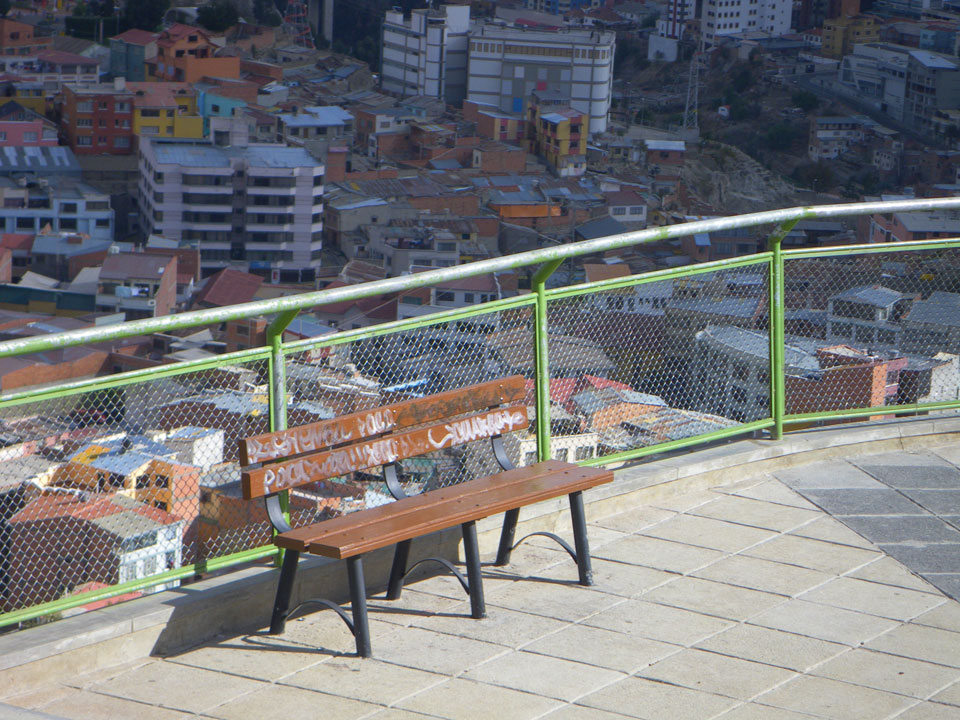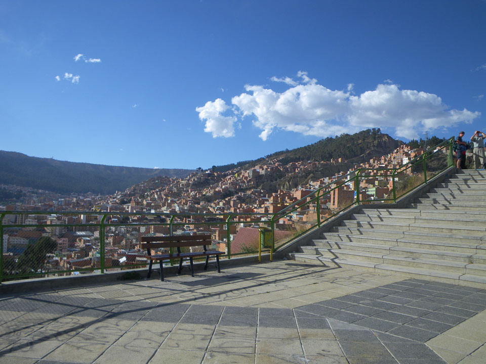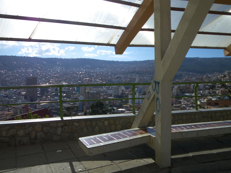 Der Weg zum Mirador Killi Killi war spärlich in der Karte eingezeichnet aber ich fragte mich durch. Bergauf ging mir die Puste. Oben dann ein super Ausblick. Ganz La Paz war zu sehen, eine recht große Stadt mit vielen kleinen Häusern gesäumt.