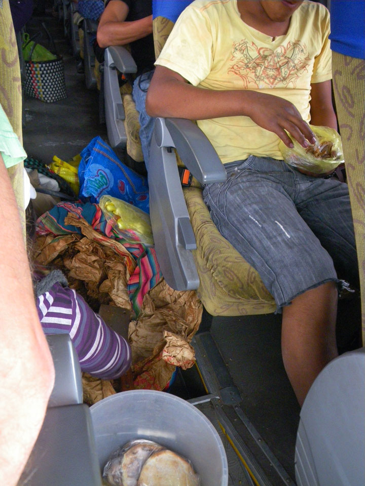 Ich gab meinen Rucksack ab, saß vorne in der ersten Reihe – leider nicht am Fenster, wie gedacht. Jemand rief an und brachte mir Proviant und Medizin für alle Fälle. Sehr sehr nett, die Locals – hätte ich nicht erwartet.