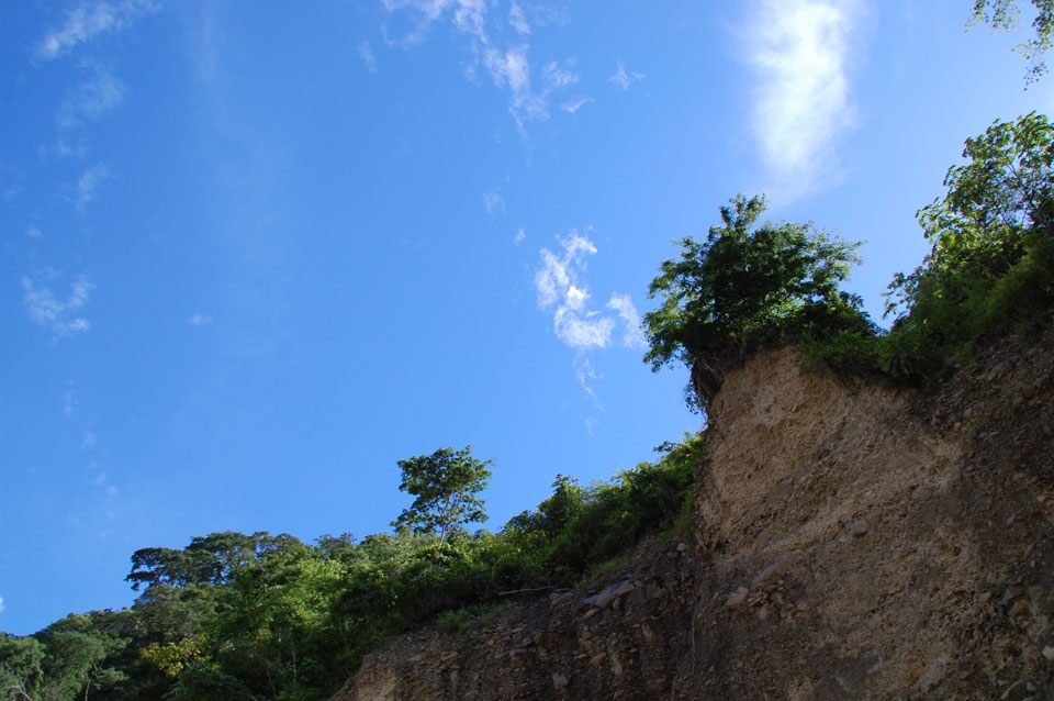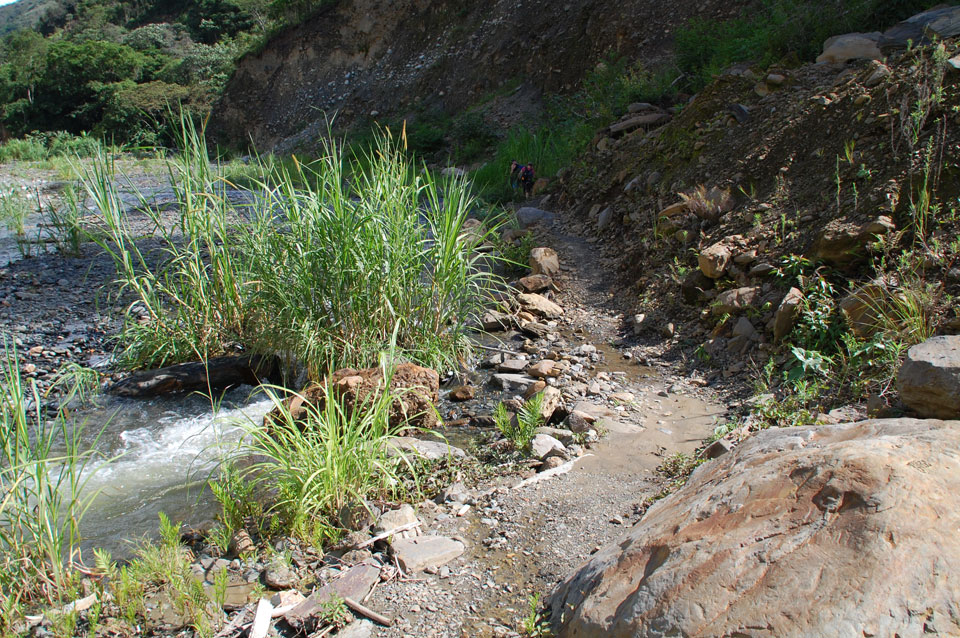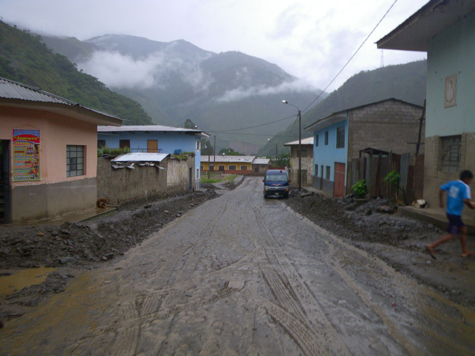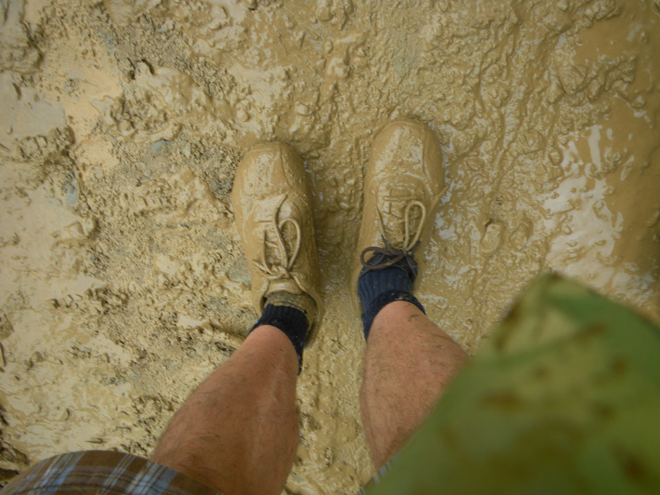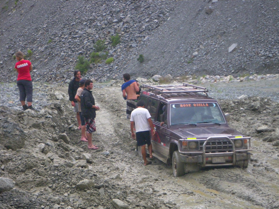 Gleich raus aus Santa María kamen wir an den alten Platz des Ortes, der 1998 vom Fluss zerstört wurde. Eine große Schlammpfütze auf dem Weg musste durchquert werden. Jeder sackte komplett ein – meine Schuhe komplett voller Schlamm draußen und auch was drinnen.