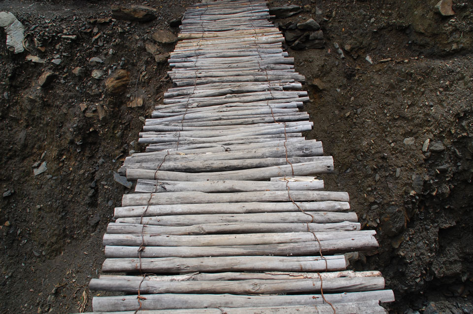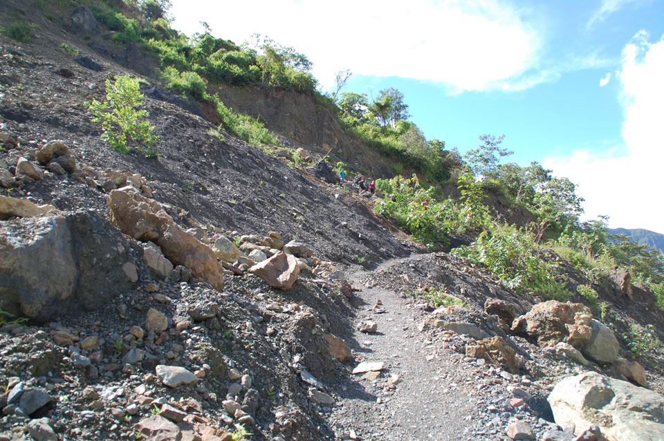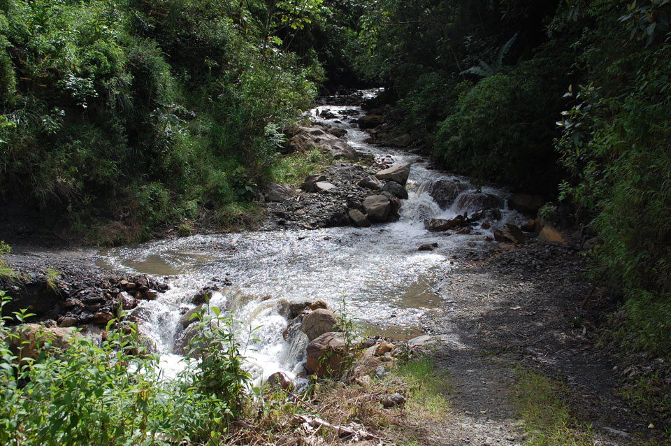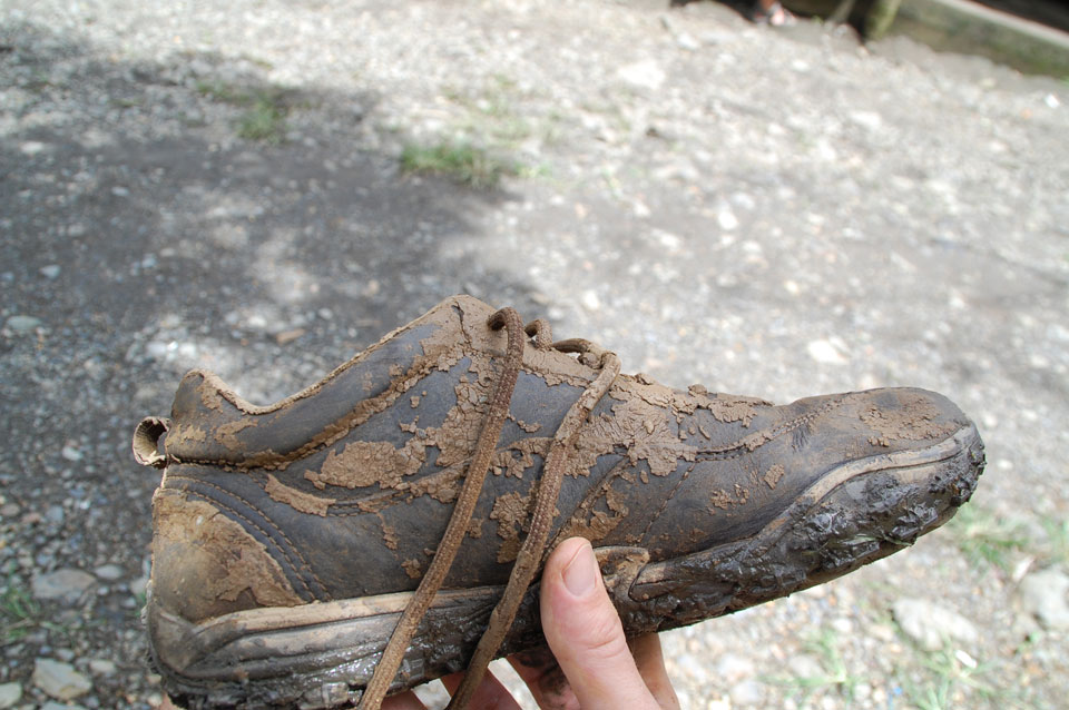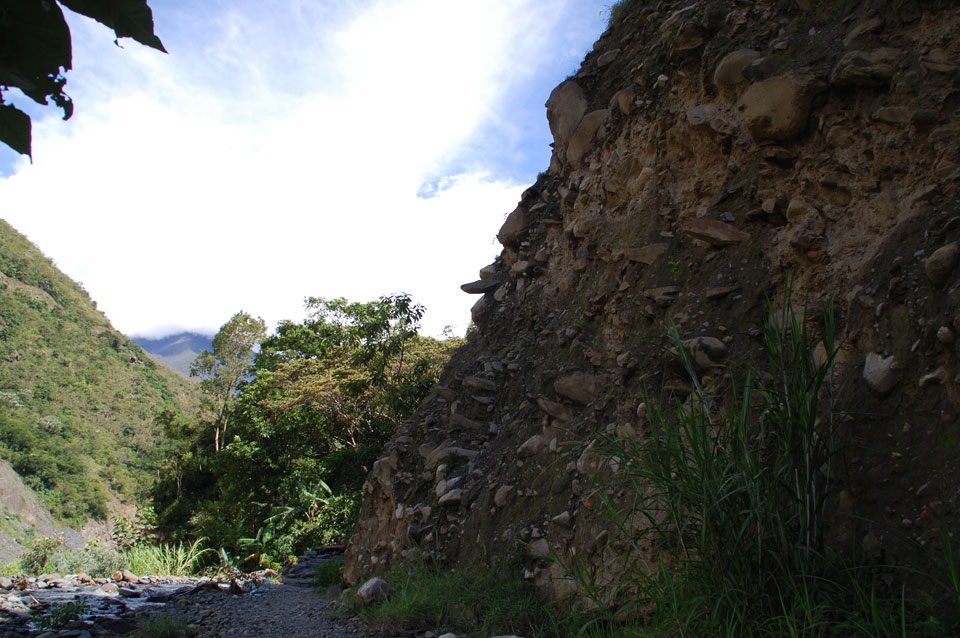 Gleich raus aus Santa María kamen wir an den alten Platz des Ortes, der 1998 vom Fluss zerstört wurde. Eine große Schlammpfütze auf dem Weg musste durchquert werden. Jeder sackte komplett ein – meine Schuhe komplett voller Schlamm draußen und auch was drinnen.
