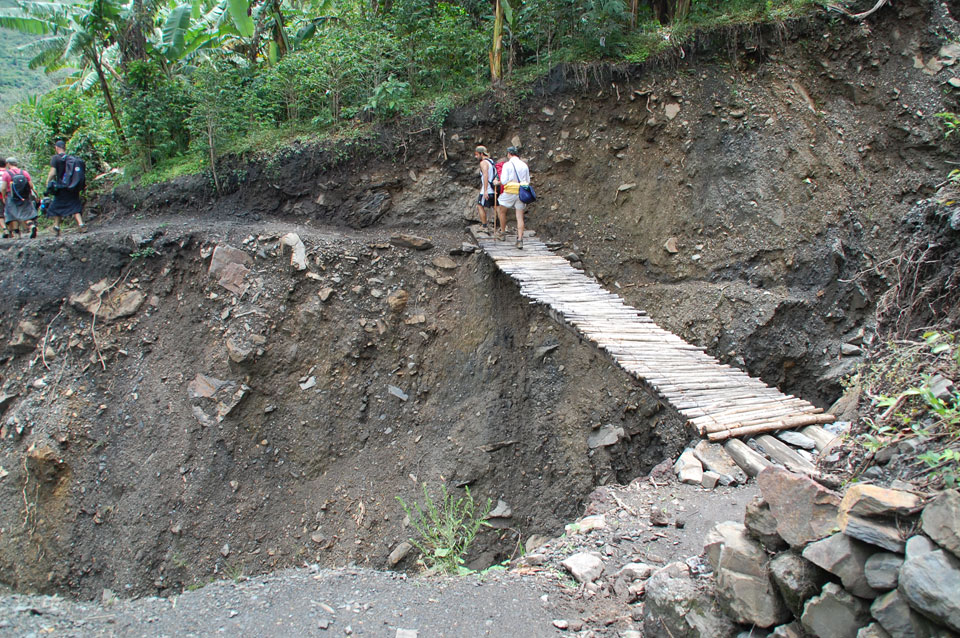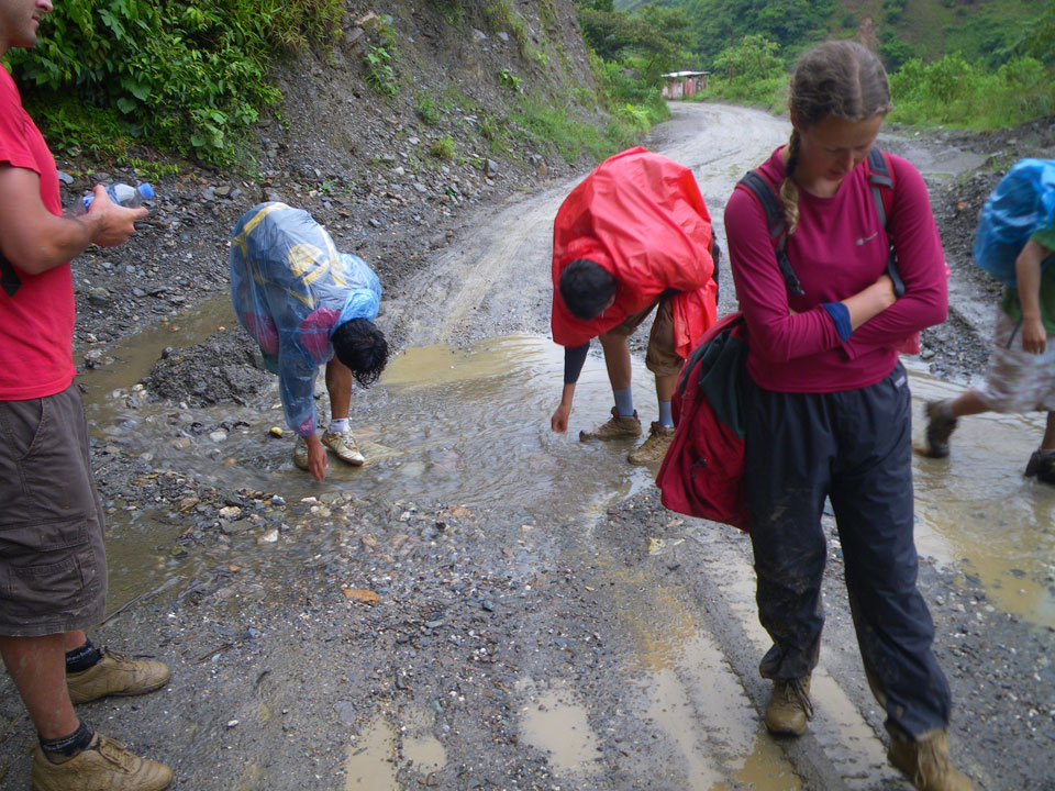 Wir mussten vor der Dunkelheit abers chon wieder aufbrechen. Durch Erdrutsche und das Wetter fuhren keine Taxis. Ein’s fuhr doch, blieb dann aber im Schlamm stecken. Wir versuchten es rauszuschieben – erfolglos. Zu Fuß kamen wir aber auch gut in den Ort. Ich wusch meine Schuhe und kaufte mir ein paar Flip Flops im Laden nebenan. Da war nur ein 8 jähriges Mädchen, was den Laden laufen ließ.