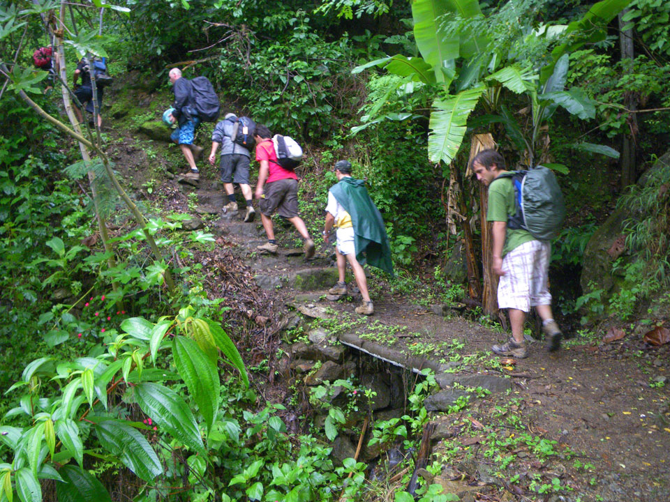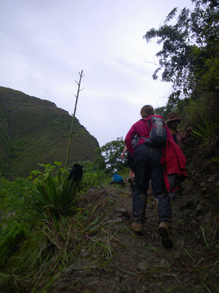 Der Plastikponcho war heute wieder wichtig, sogar mein Rucksack passte drunter. Nach dem guten Frühstück ging’s los auf den Weg nach Santa Teresa – gut 8 Stunden zu laufen.