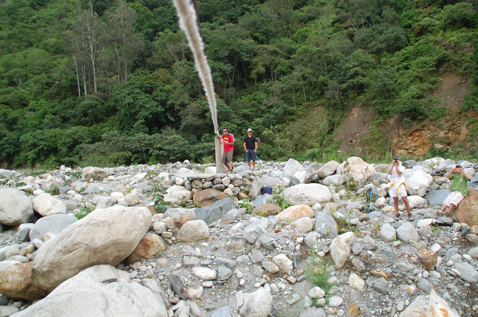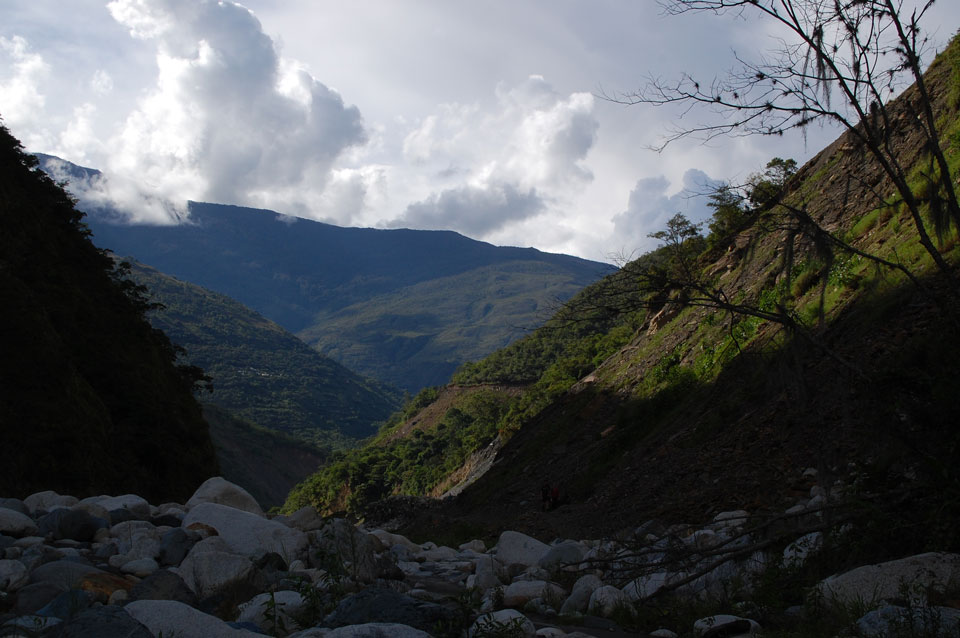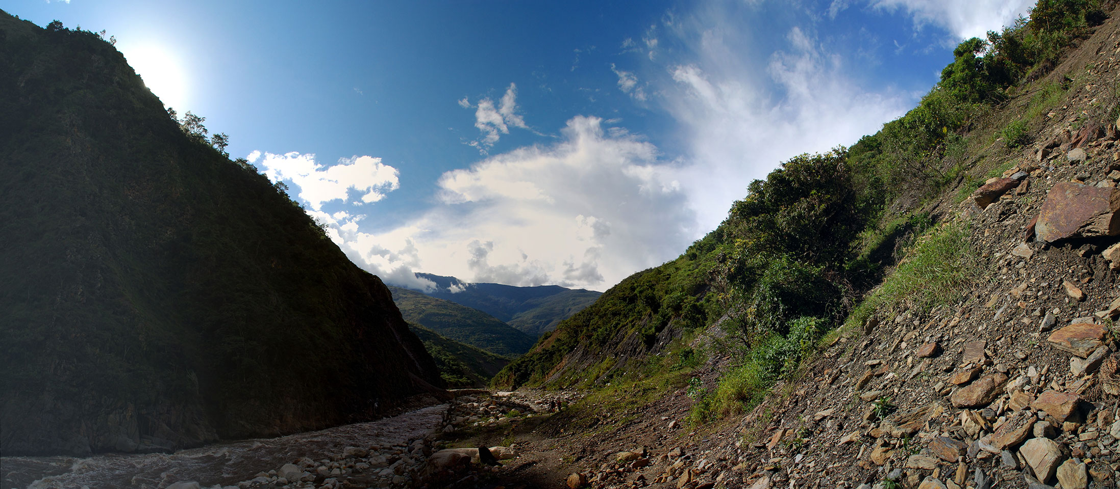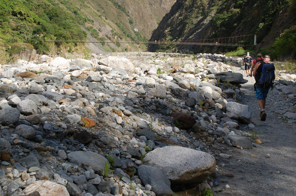 Schöne Aussichtspunkte und Geröllärm auf der anderen Bergesseite. Eine neue Straße nach Aguas Calientes wird da gebaut und die Felsen rollen in den Abgrund.