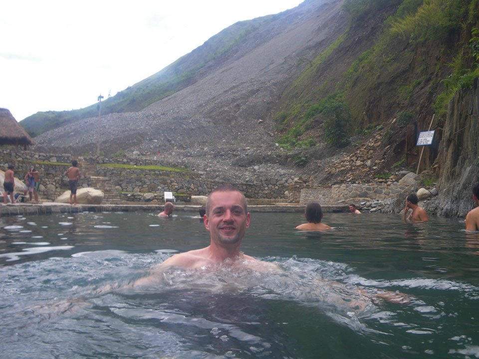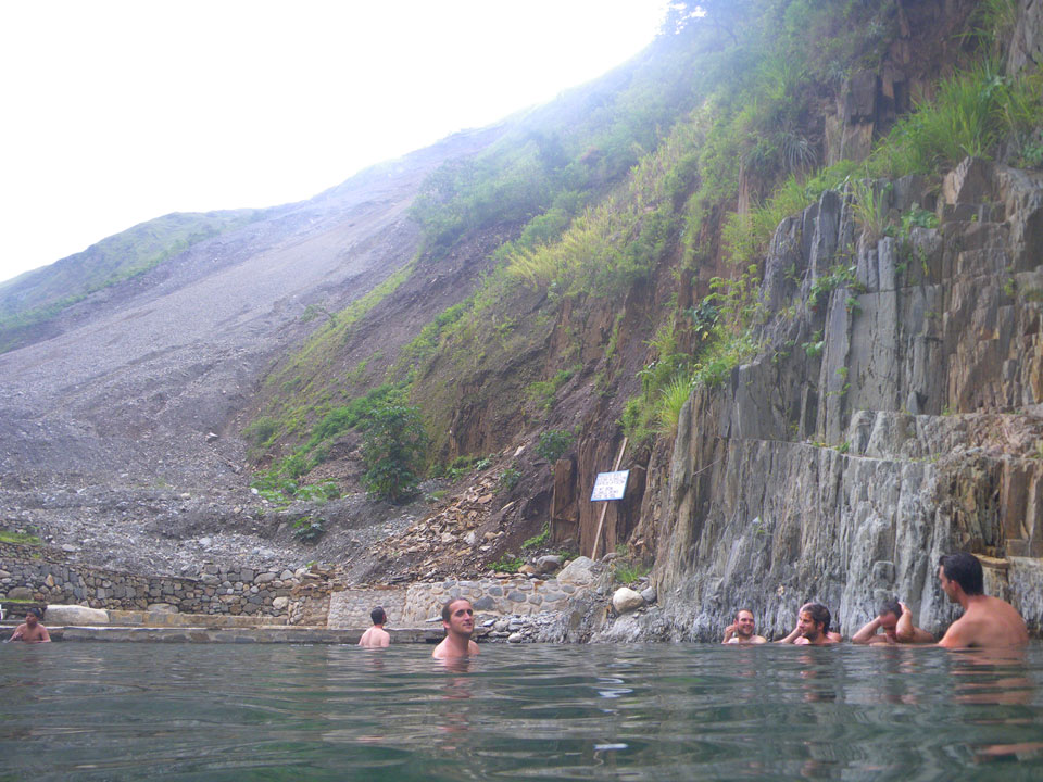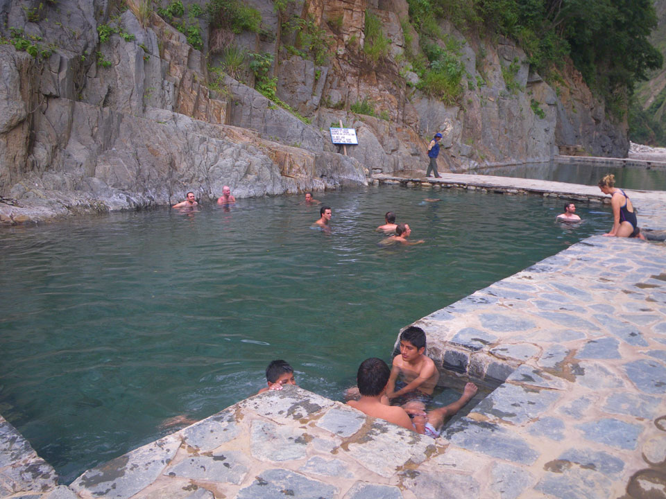 Die Belohnung kam am Ende – die heißen Quellen vor Santa Teresa. Ein Bier als erster Preis, dann rlaxen im warmen Wasser in fantstischer Umgebung. Die hohen Berge ringsum, im Wasser nach einem langen Marsch – einfach super!